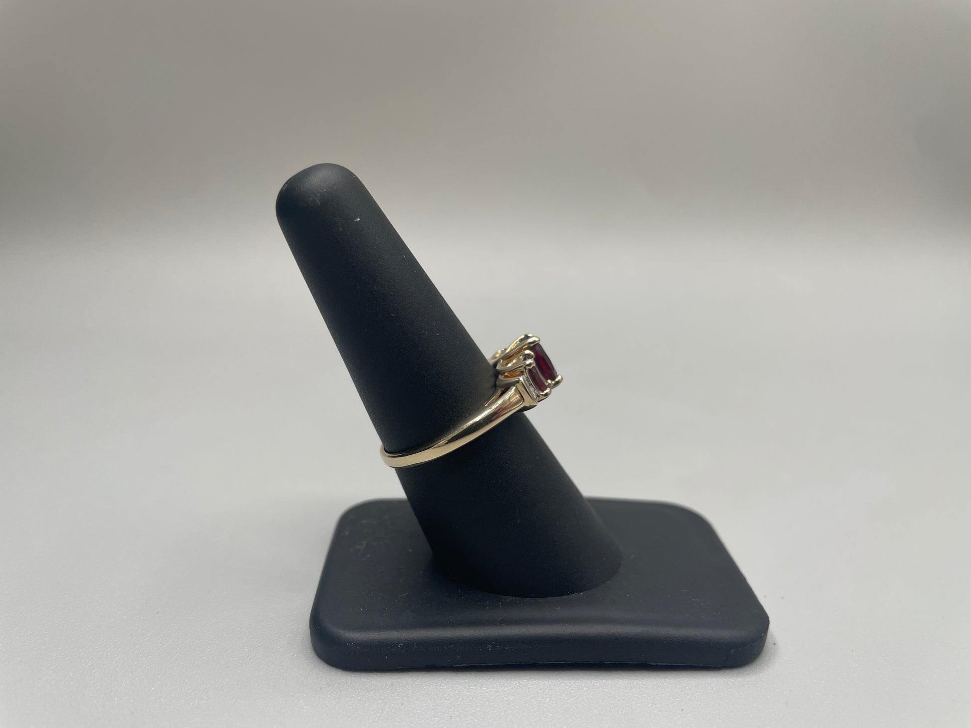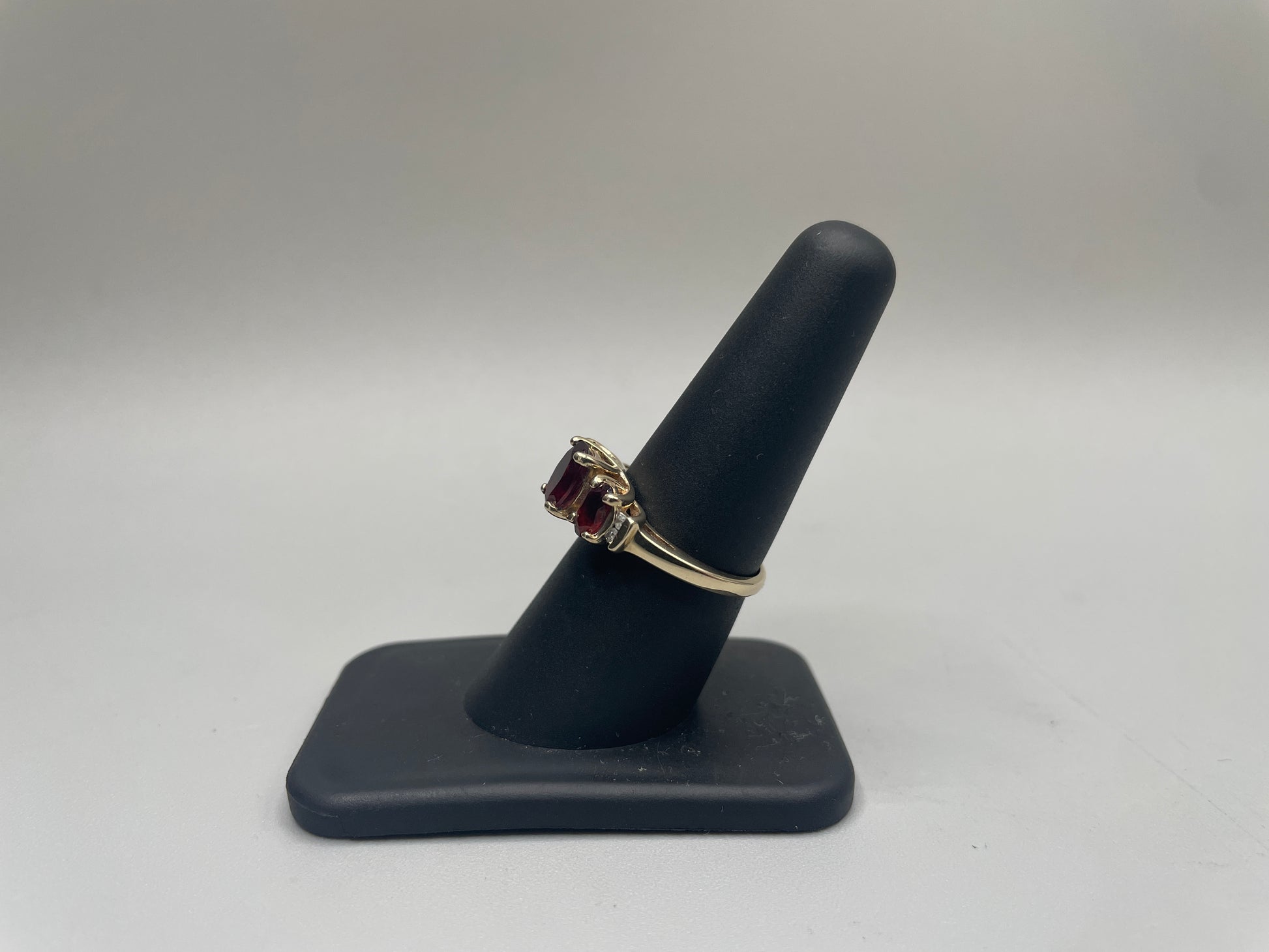 10K Yellow Gold Garnet & Diamond Ring (Diamond 0.08 CTW) (Size 7 1/4)
