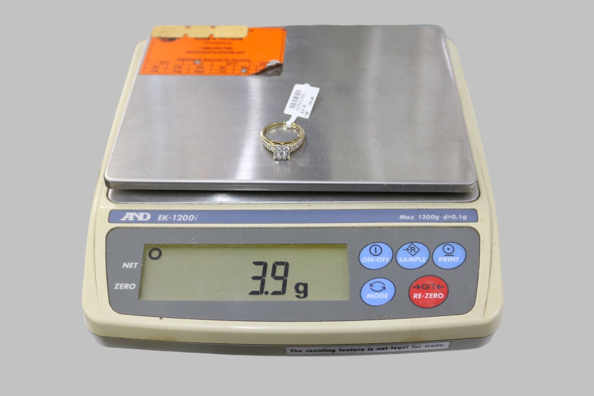 Discover the best ring for your loved one with our lovely pre-owned 10K Yellow Gold Lab Grown Diamond Cluster Ring. This beautiful ring has been professionally cleaned and features round-cut diamonds with a clarity of VS1-VS2, a color of G. The diamond at the center is 0.15 cts, and it has 14 diamonds @ 0.05 cts each, for a 0.85 ctw. This ring is sure to impress. Weighing 3.9 grams, it is comfortable to wear and will complement any style. You can purchase this ring in-store or opt for shipping. View the provided pictures to understand this exquisite piece fully. You can also take advantage of our layaway plan with a 30% deposit and secure this stunning ring today.
