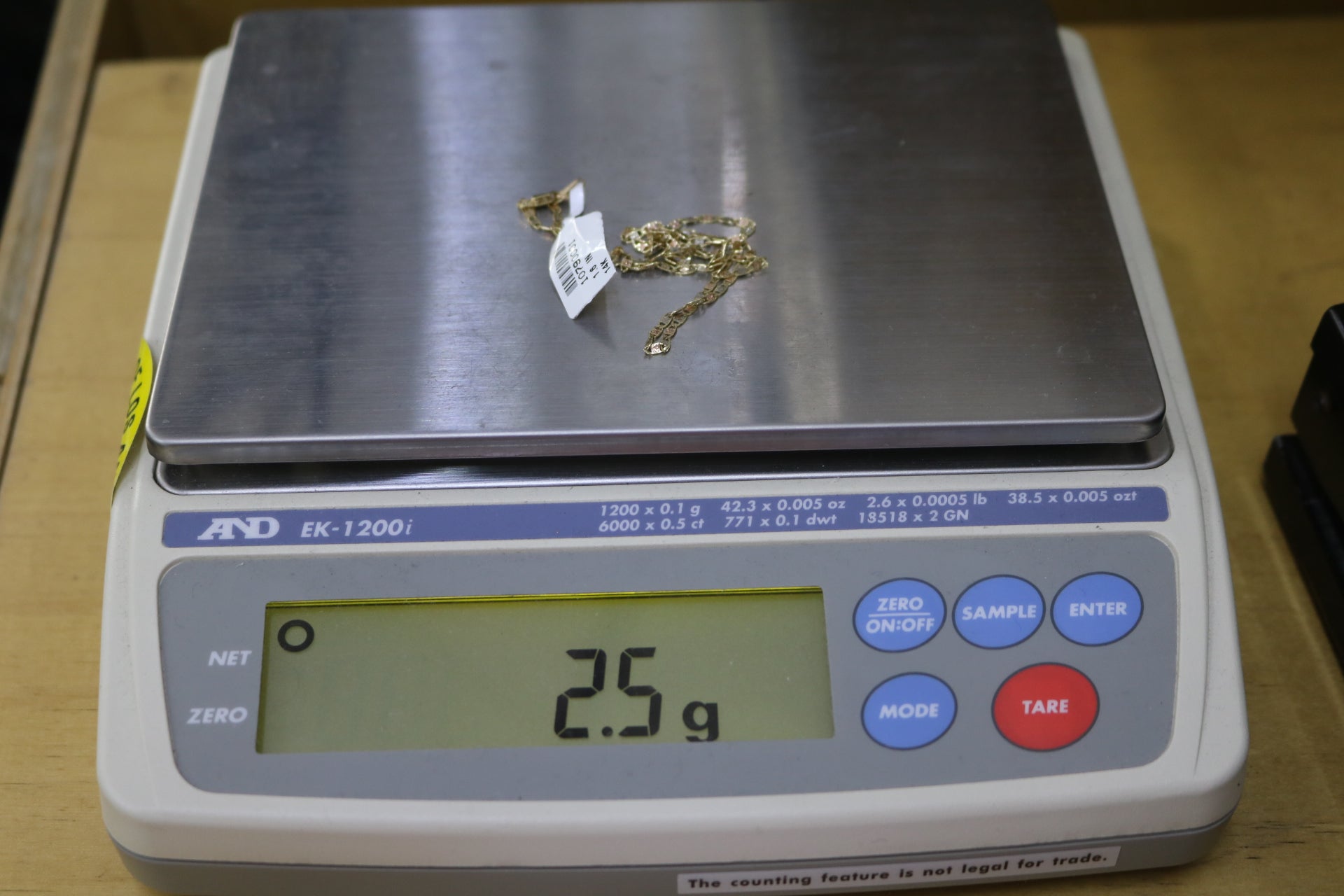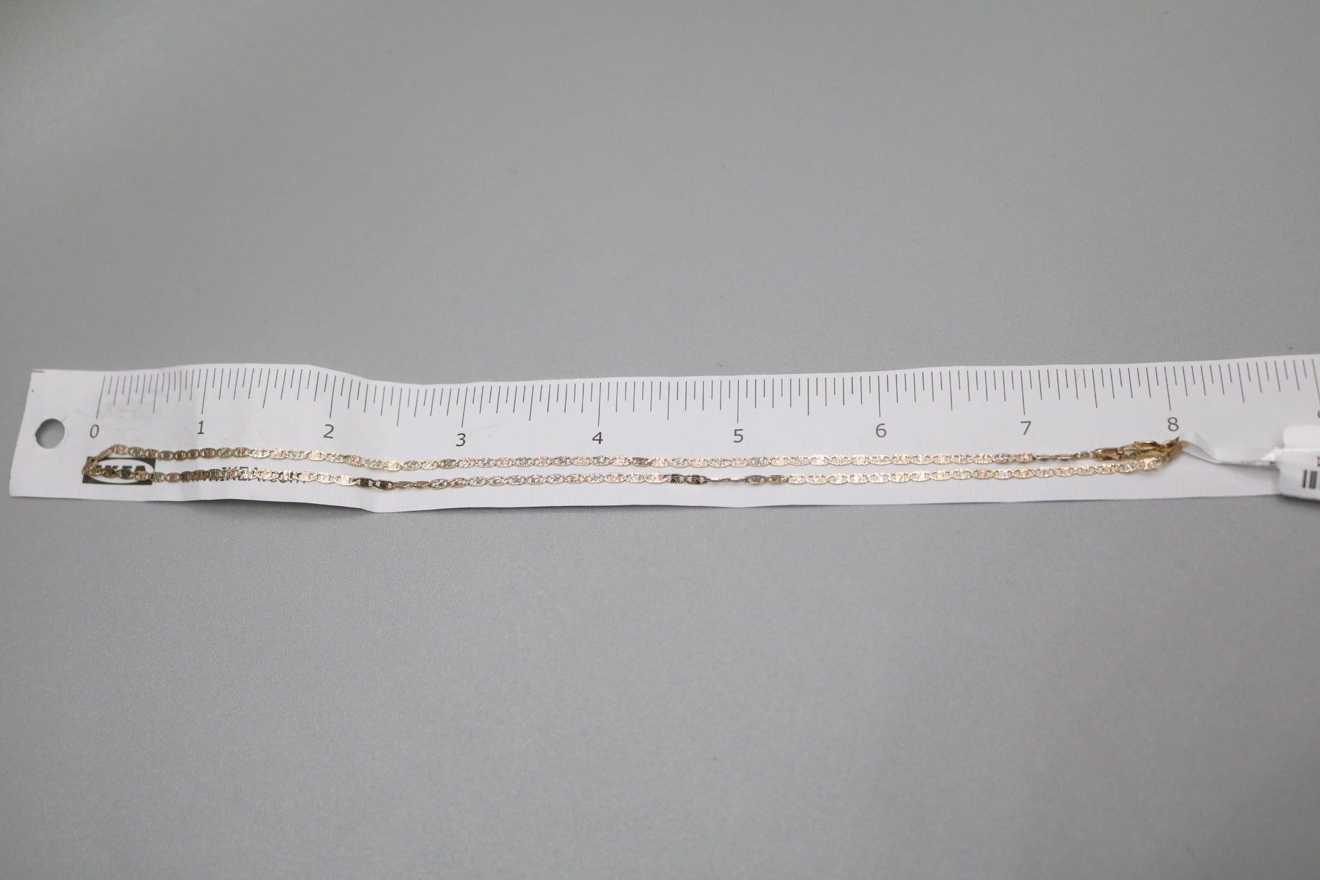 For sale is a stunning pre-owned 14K 3 Tone Gold Gucci Chain, elegantly crafted and measuring 16 inches in length. This exquisite piece has been professionally cleaned and polished, ensuring its brilliance shines through. Weighing a delicate 2.5 grams, this chain showcases the iconic Gucci design, perfect for those who appreciate luxury and style. Please take a moment to admire all the pictures provided to truly appreciate the beauty of this item. We also offer a convenient layaway plan, allowing you to secure this treasure with just a 30% deposit. You can pick up the chain at your convenience during our regular business hours, or if you prefer, we’ll ship it directly to you, complete with tracking information and insurance for peace of mind. Don’t miss out on this opportunity to own a piece of luxury!