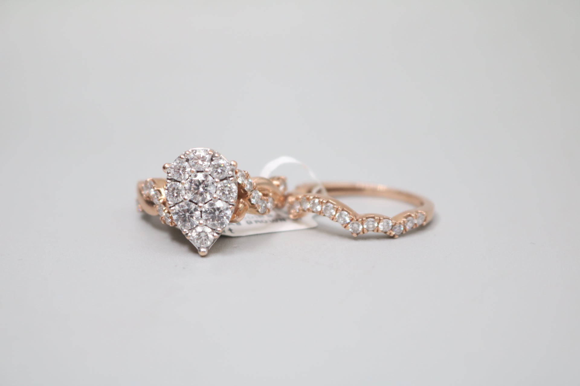 14K Rose Gold Lab Grown Diamond Pear Shaped Ring Set (2.10 CTW) (Size 7 & 7 1/4) (Local Purchase Only)