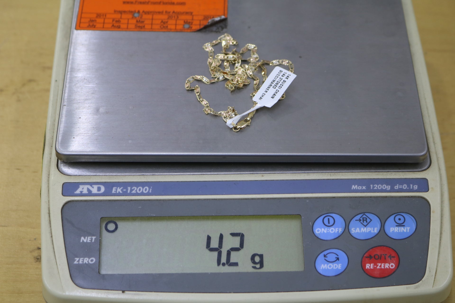 For sale is a stunning 14K Three-Toned Fancy Gucci Chain, a truly exquisite piece that is in excellent condition. This chain has been professionally cleaned and polished, showcasing a luxurious Gucci-inspired design with a captivating three-tone gold finish. Weighing in at a delicate 4.2 grams and measuring a generous 24 inches in length, this piece effortlessly combines elegance and style. We invite you to explore the attached images for a closer look at the exceptional craftsmanship and beauty of this item. To make your purchase even more convenient, a layaway option is available with a 30% deposit. Feel free to pick up this remarkable chain during regular business hours or opt for shipping, which includes tracking information for your peace of mind. Don’t miss the chance to own this fabulous accessory!