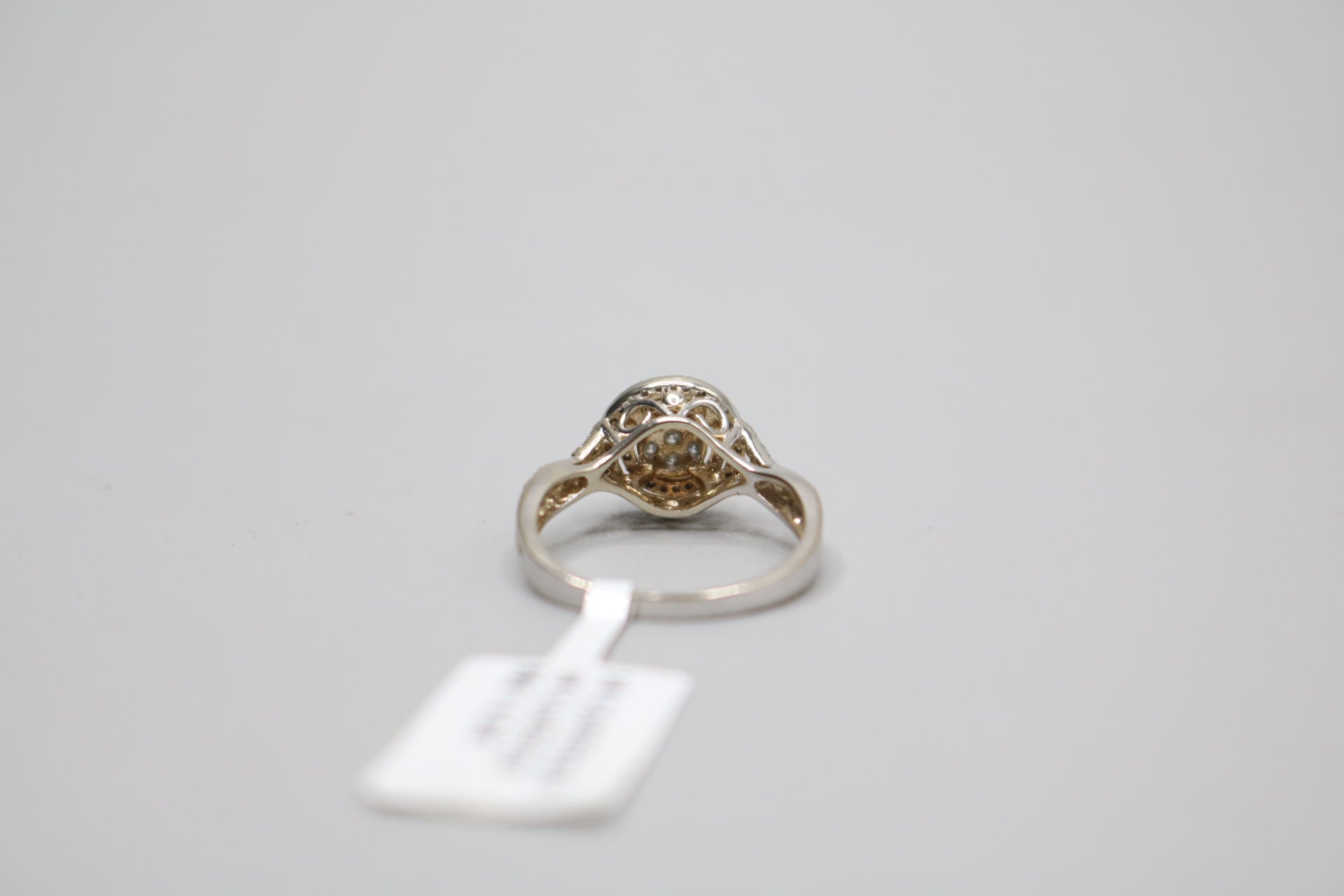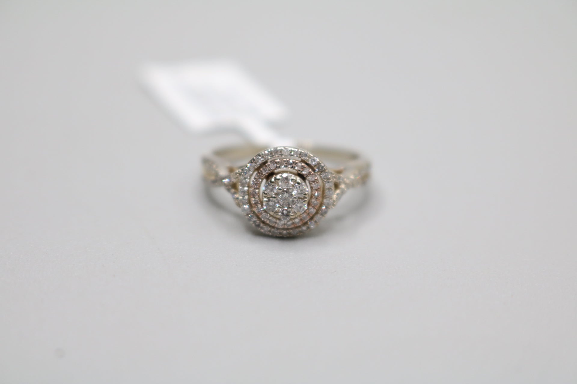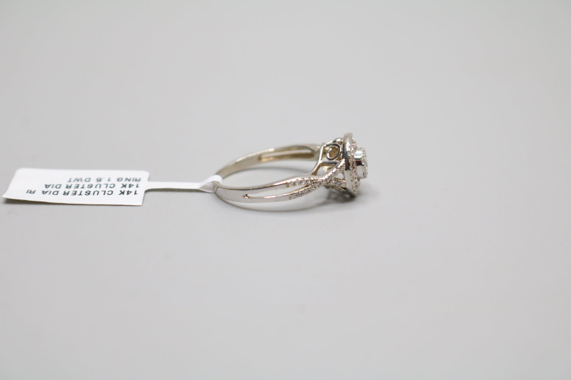 We're pleased to offer a stunning pre-owned 14K Two Tone Engagement Ring with Diamonds (0.55 CTW) (Size 5 3/4) that's been professionally cleaned to look brand new. Weighing 2.4 grams, this ring is an embodiment of elegance and sophistication. The ring features 80 round-cut diamonds @ 0.005cts each, 6 @ 0.02cts each, and 1 @ 0.03cts.. The diamonds have a color/clarity of SI1/G-H. Please take a look at the pictures to appreciate its beauty. If you’re interested in the ring, we offer a layaway plan with a 30% deposit. For additional information, please contact us. You can purchase the item anytime during regular business hours, however, shipping is not available for this ring. Don't miss this opportunity to own a one-of-a-kind piece of jewelry. Make your purchase today!