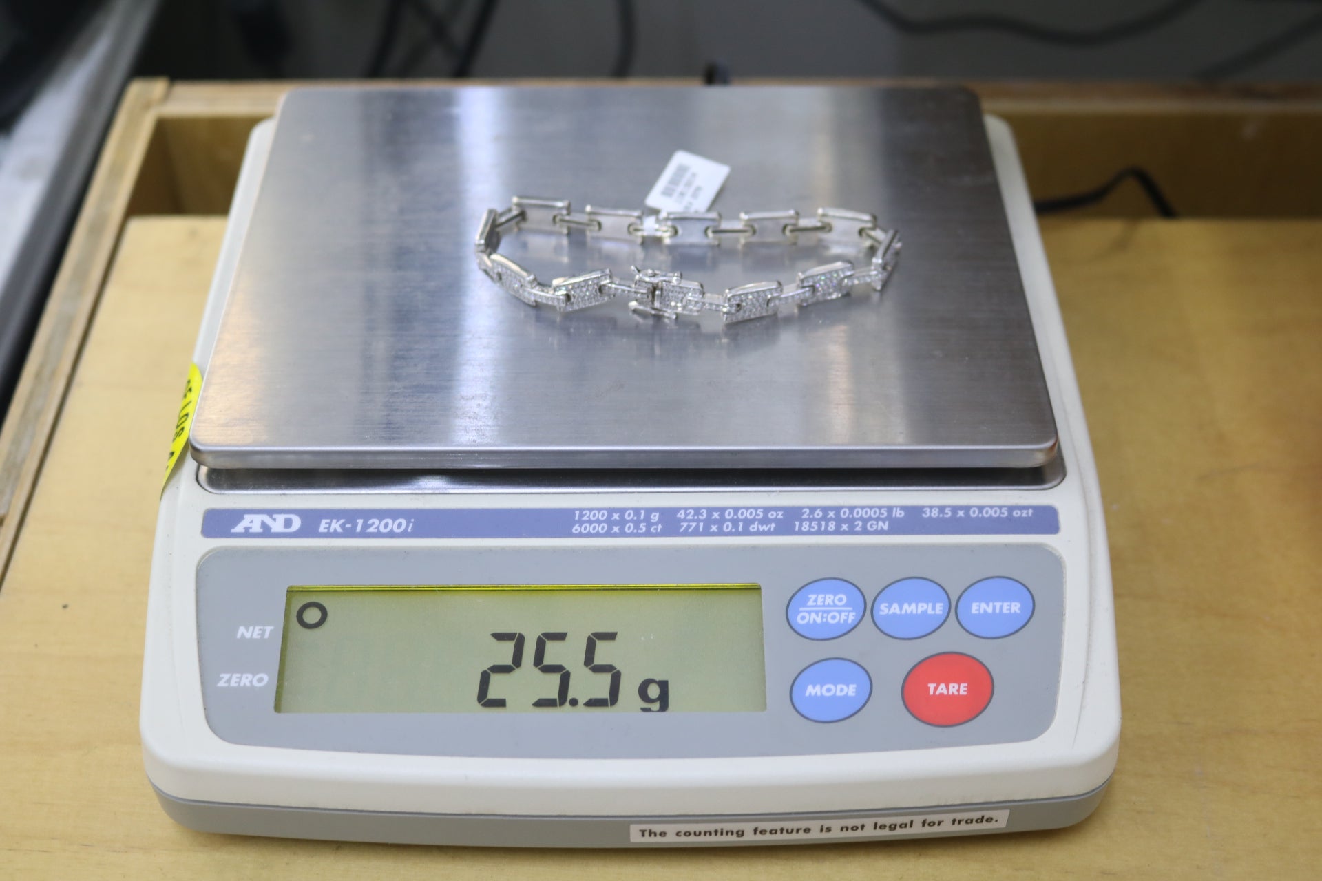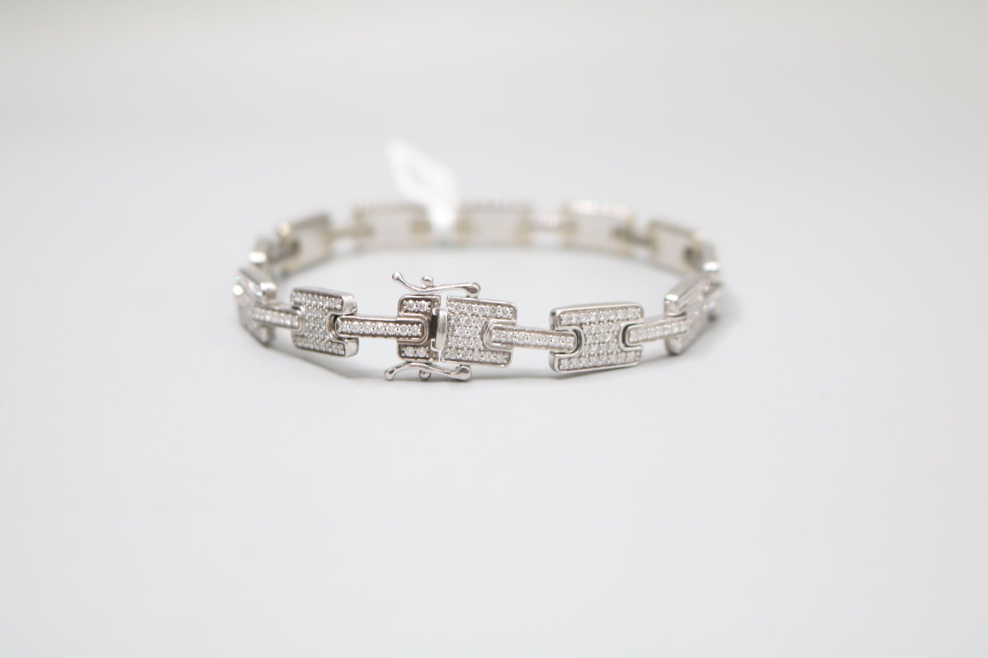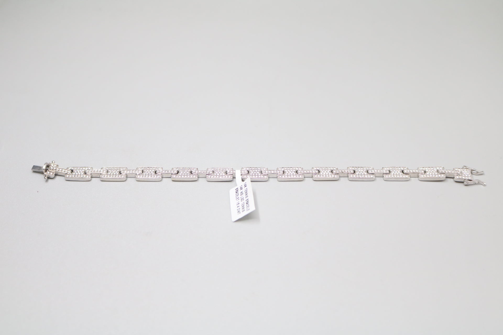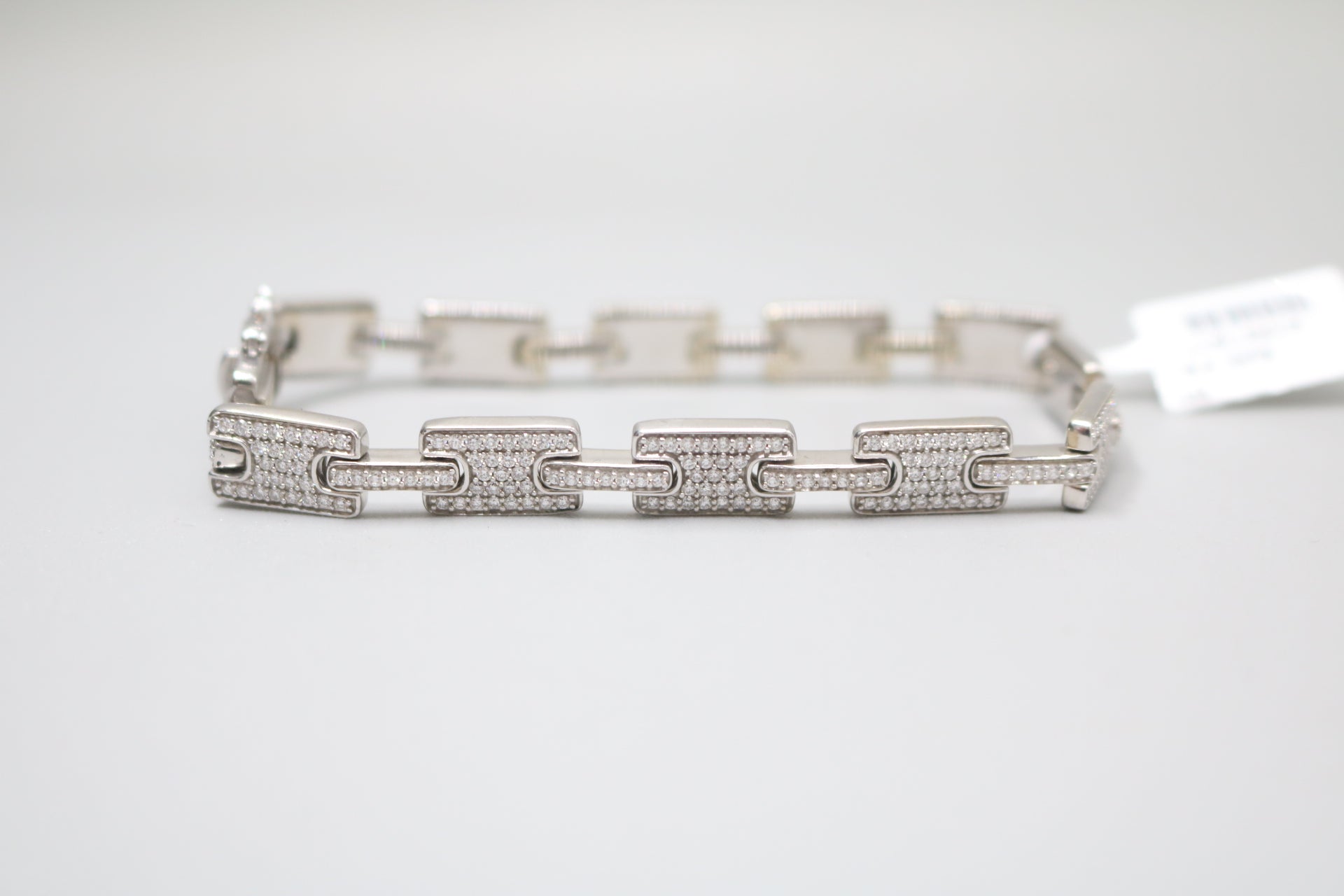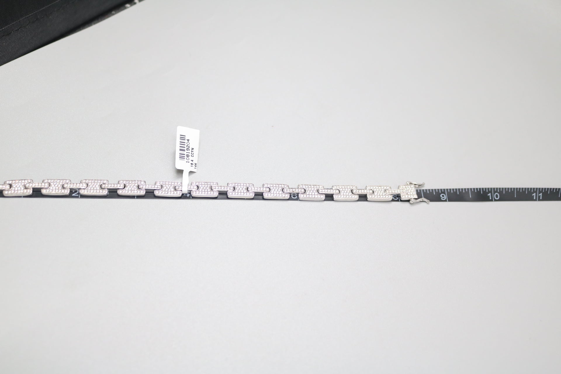 Check out this stunning 14K White Gold Lab Grown Diamond Track Bracelet (4.03 CTW) (8.25 Inches) for sale. This exquisite piece features 403 round-cut lab-grown diamonds, each 0.01 cts, with a color of G-H and a clarity of VS2, totaling 25.5 grams. Please note that the diamonds are lab-grown, not natural. Local pick-up/purchase is the only available option. Make sure to view all the provided pictures to truly appreciate this beautiful bracelet.