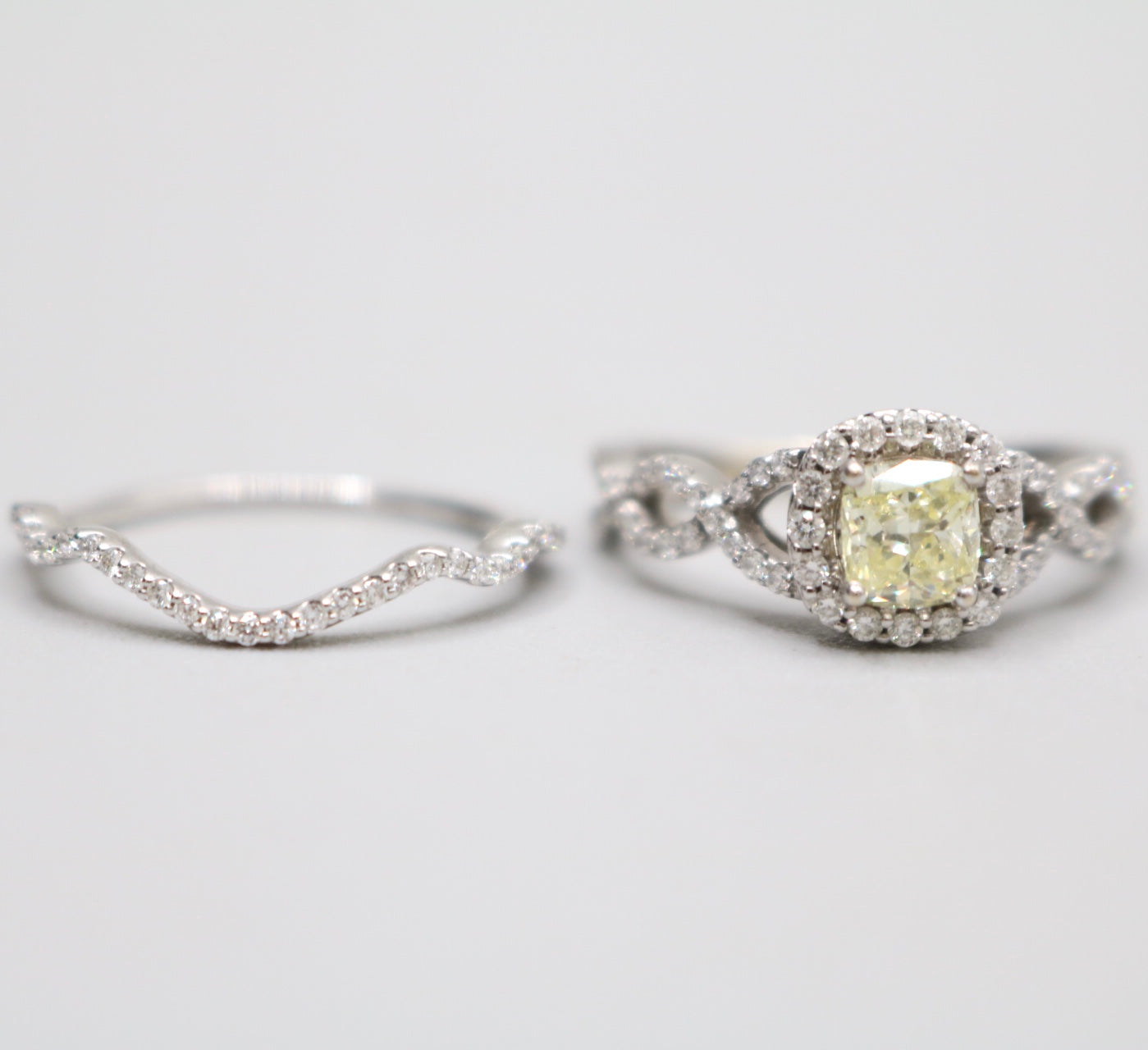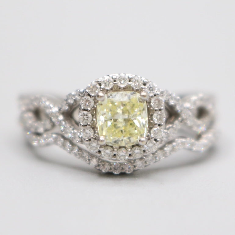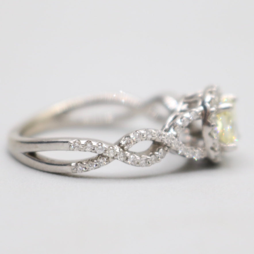 14K White Gold Radiant Cut Fancy Yellow Engagement Ring size 7 1/4 & 8