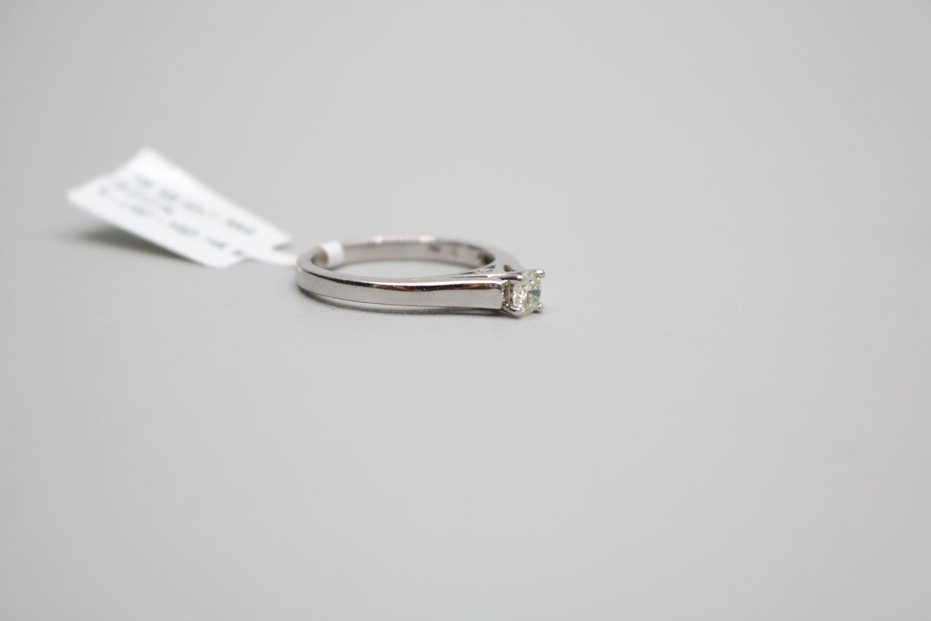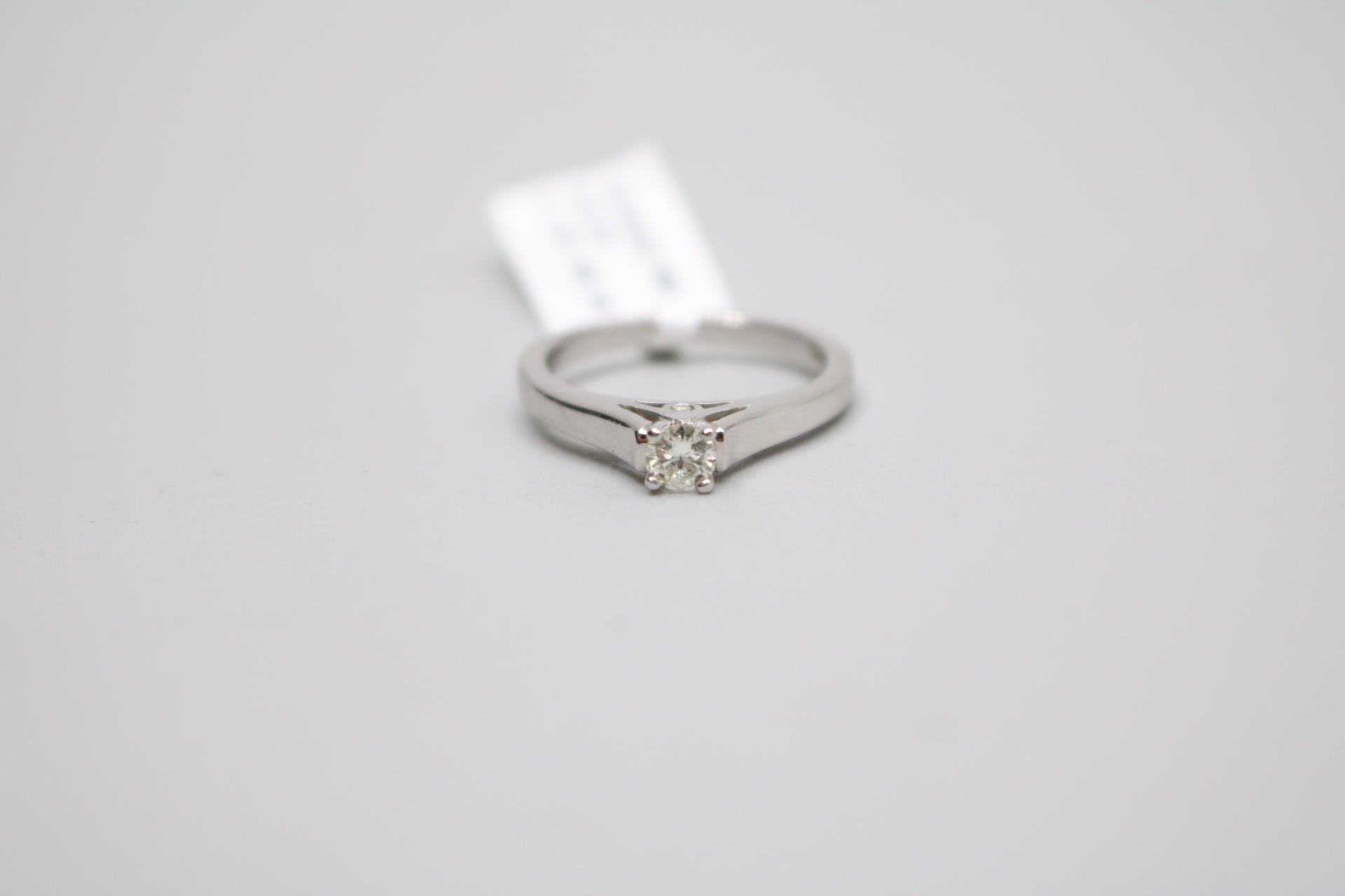 Introducing a stunning 14K White Gold Solitaire Ring 0.21CTW (Size 7) for sale. This exquisite ring has undergone professional cleaning and polishing to reveal its true beauty. Adorned with a Solitaire design, it boasts a dazzling center-round brilliant diamond of 0.21CTW and 2 0.01ct round brilliant diamond chips on the side totaling 0.22 CTW. The diamonds are graded with a color designation of H-I and a quality rating of VS1-VS2. This size 7 ring weighs 3.3 grams and is presented with detailed pictures for your scrutiny. Take advantage of our layaway plan with a 30% deposit. For additional information, please contact us. You can pick up the item anytime during regular business hours, or you can get it shipped to you, and shipping will include tracking information and insurance.