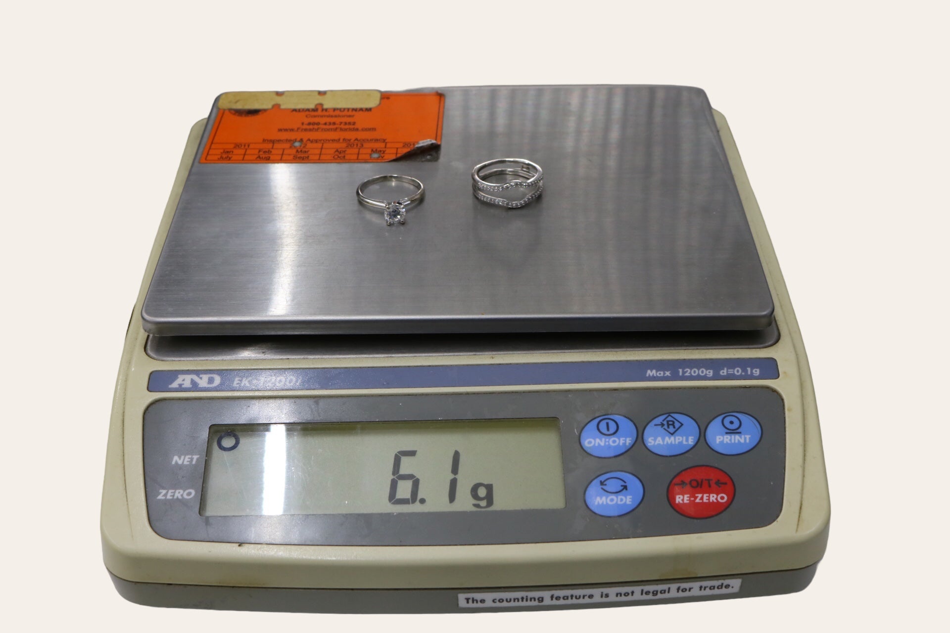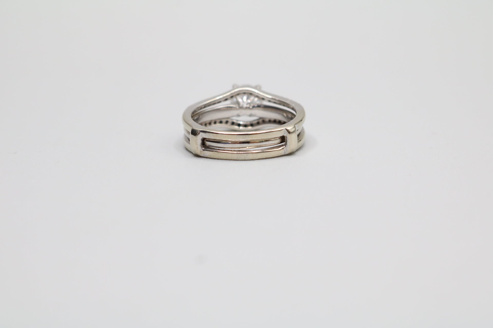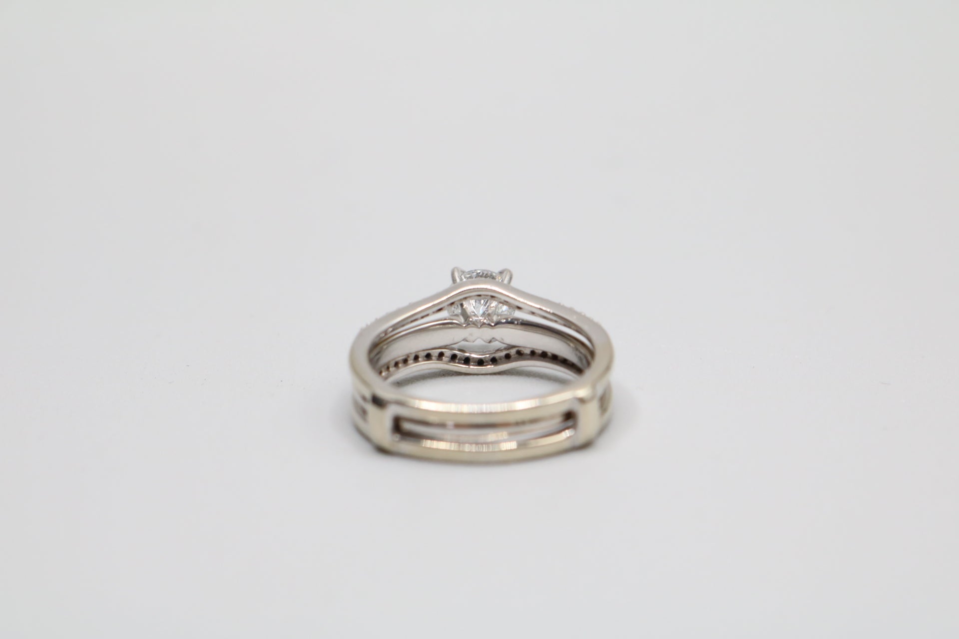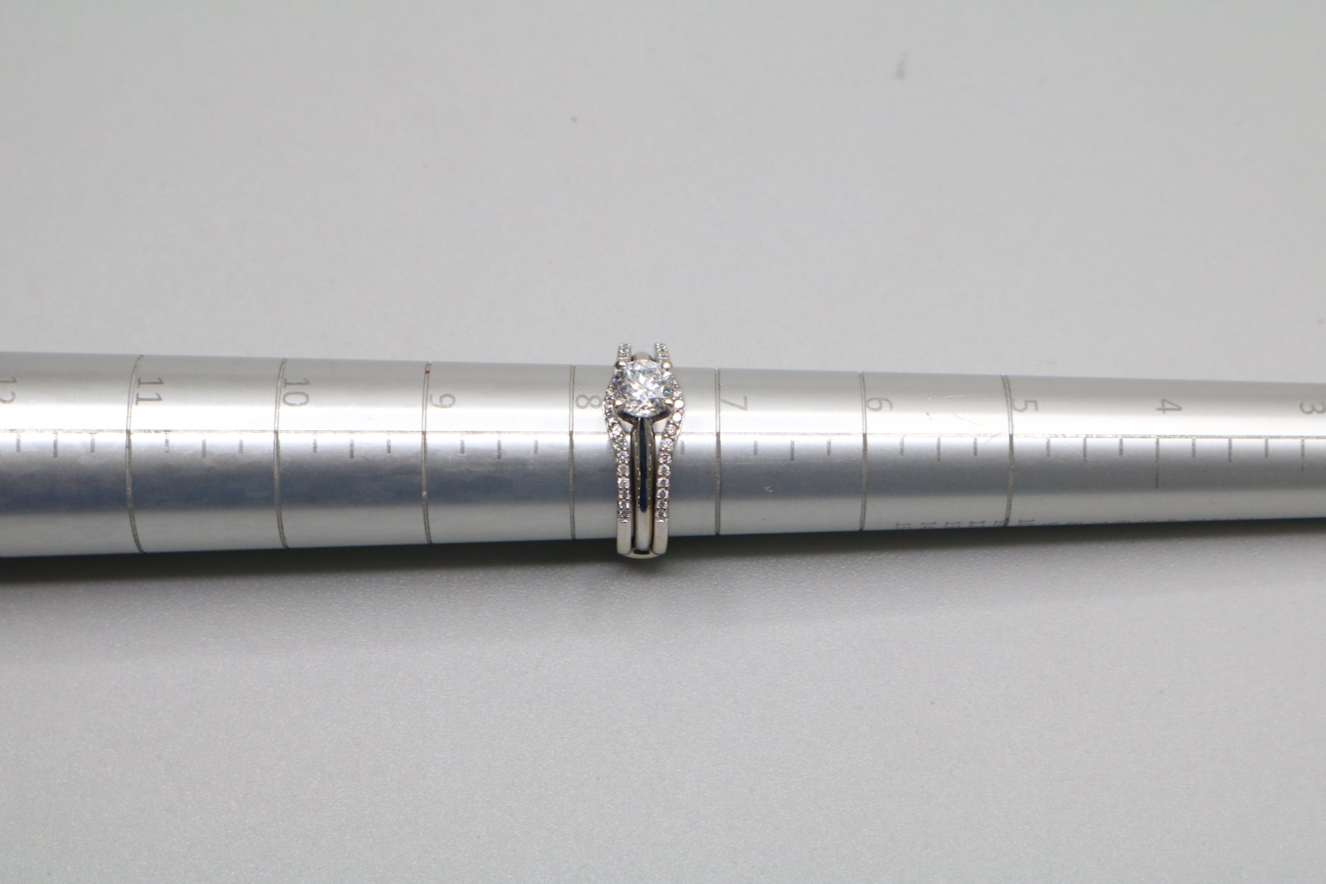 We have a pre-owned 14K White Gold Wedding Ring Set (Size 7 1/2 & 1.24 CTW) available for sale. The ring has been professionally cleaned. The solitaire ring has a single round-cut 0.86 cts diamond with a color of H-I and a clarity of I2-I3. The other ring has 38 round-cut diamonds @ 0.01cts each with a clarity of I2 and a color of H-I. The rings are a size 7 &1/2 and weigh 6.1 grams together. You can purchase the item anytime during regular business hours. Please view all of the pictures that are provided so that you can have a proper understanding of the item you are purchasing. A layaway plan is available with a 30% deposit. For additional information, please contact us. Shipping is not available for this particular item.