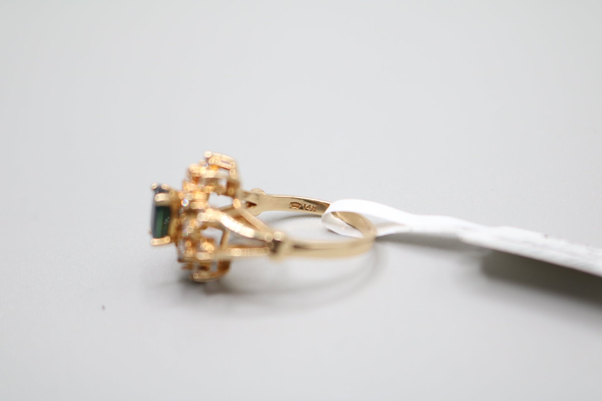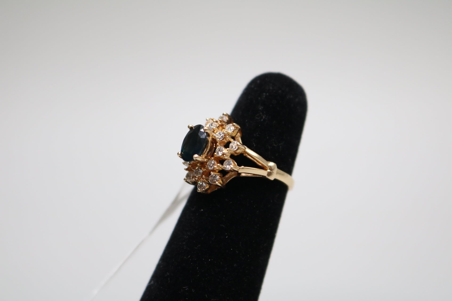 14K Yellow Gold Diamond and Topaz Cluster Ring (Size 5 3/4)
