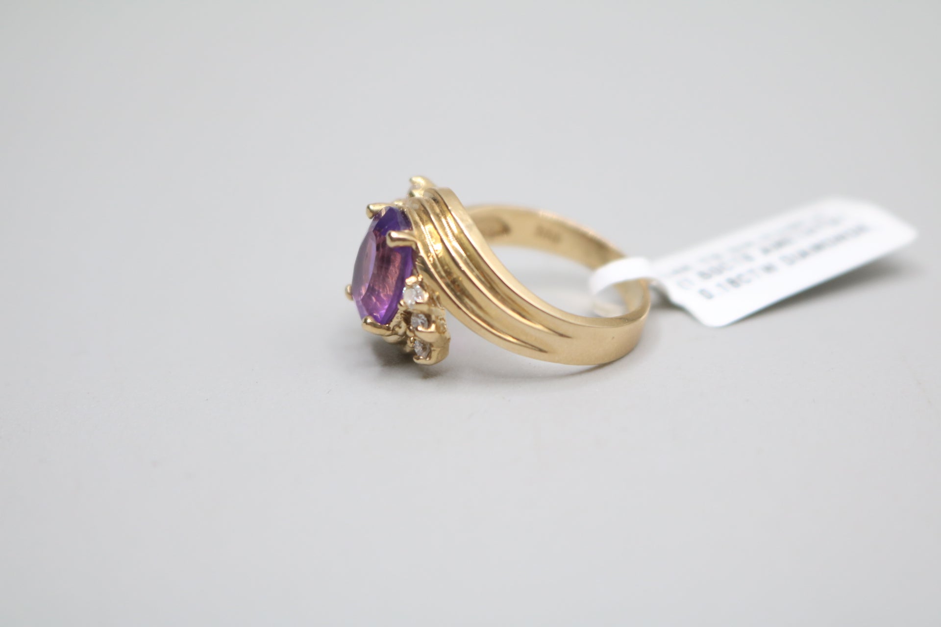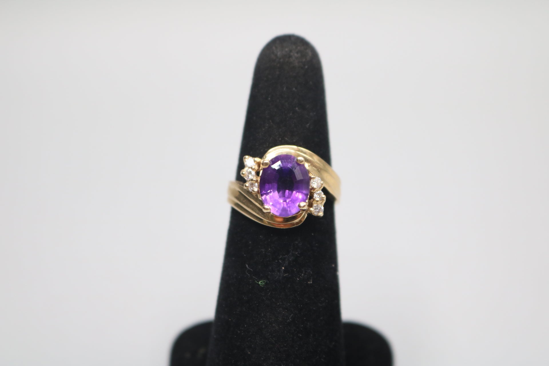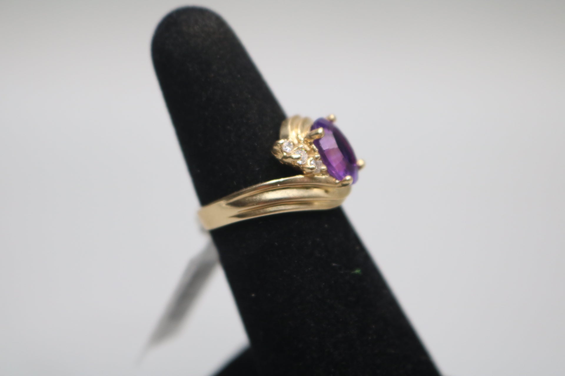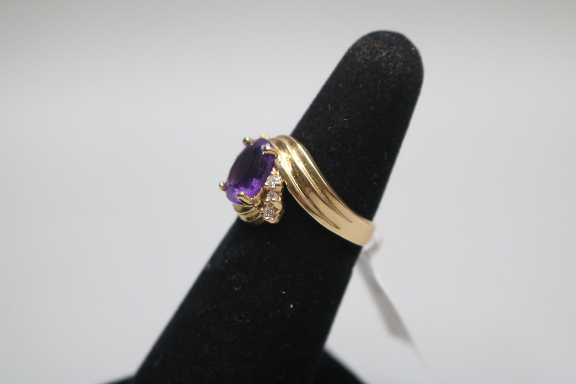 14K Yellow Gold Diamond Bypass Amethyst Ring (Size 6)