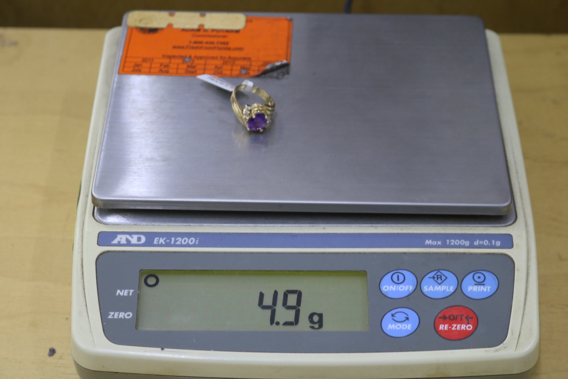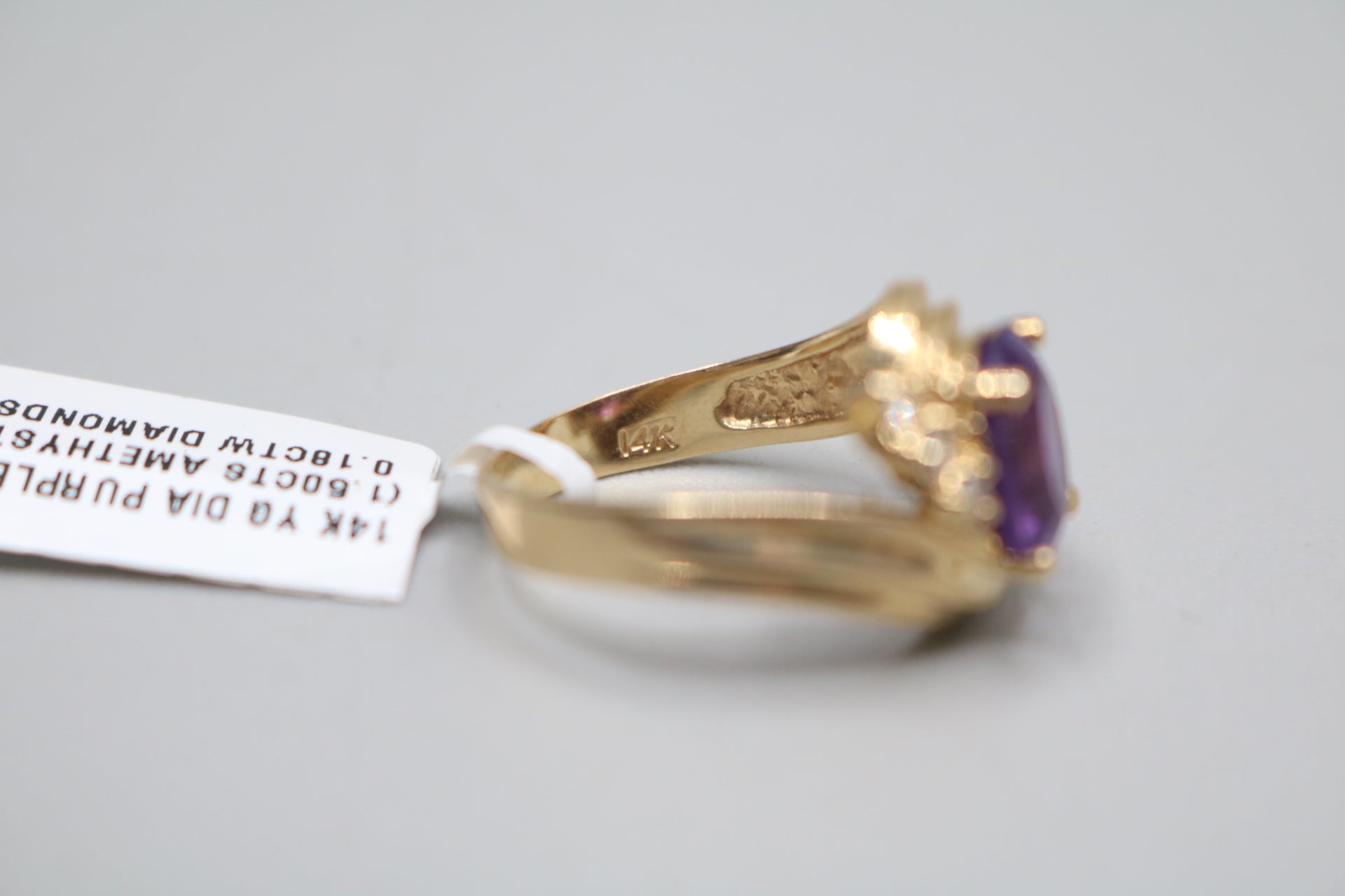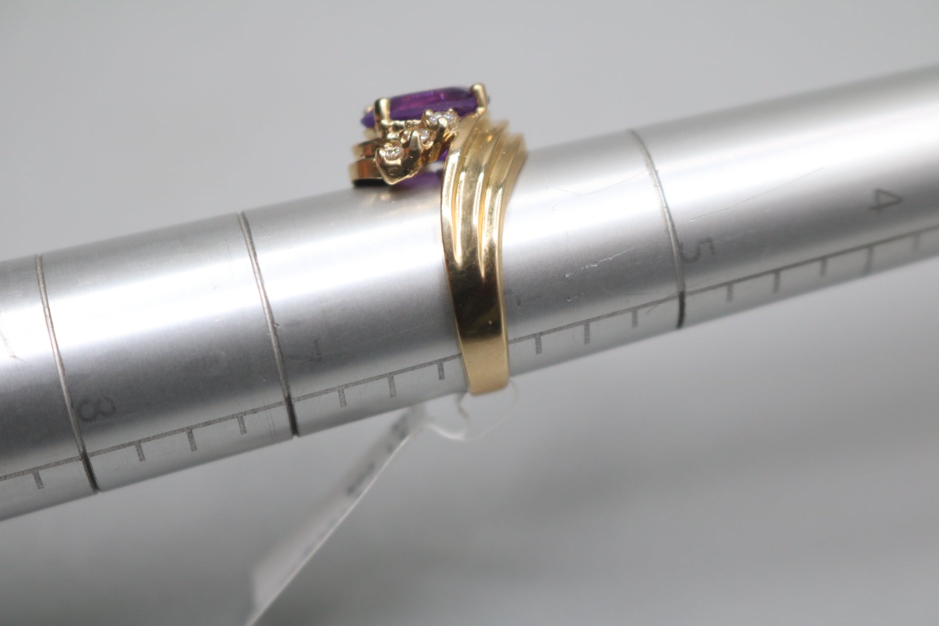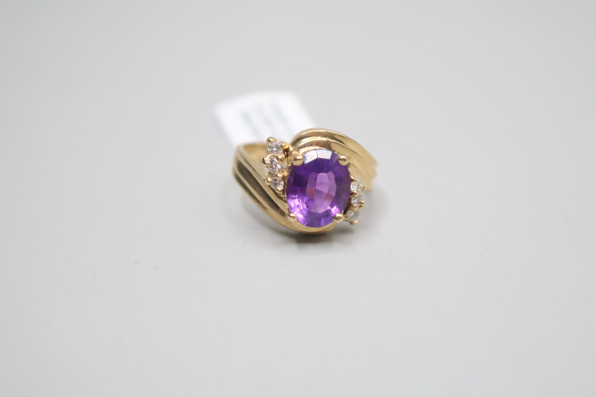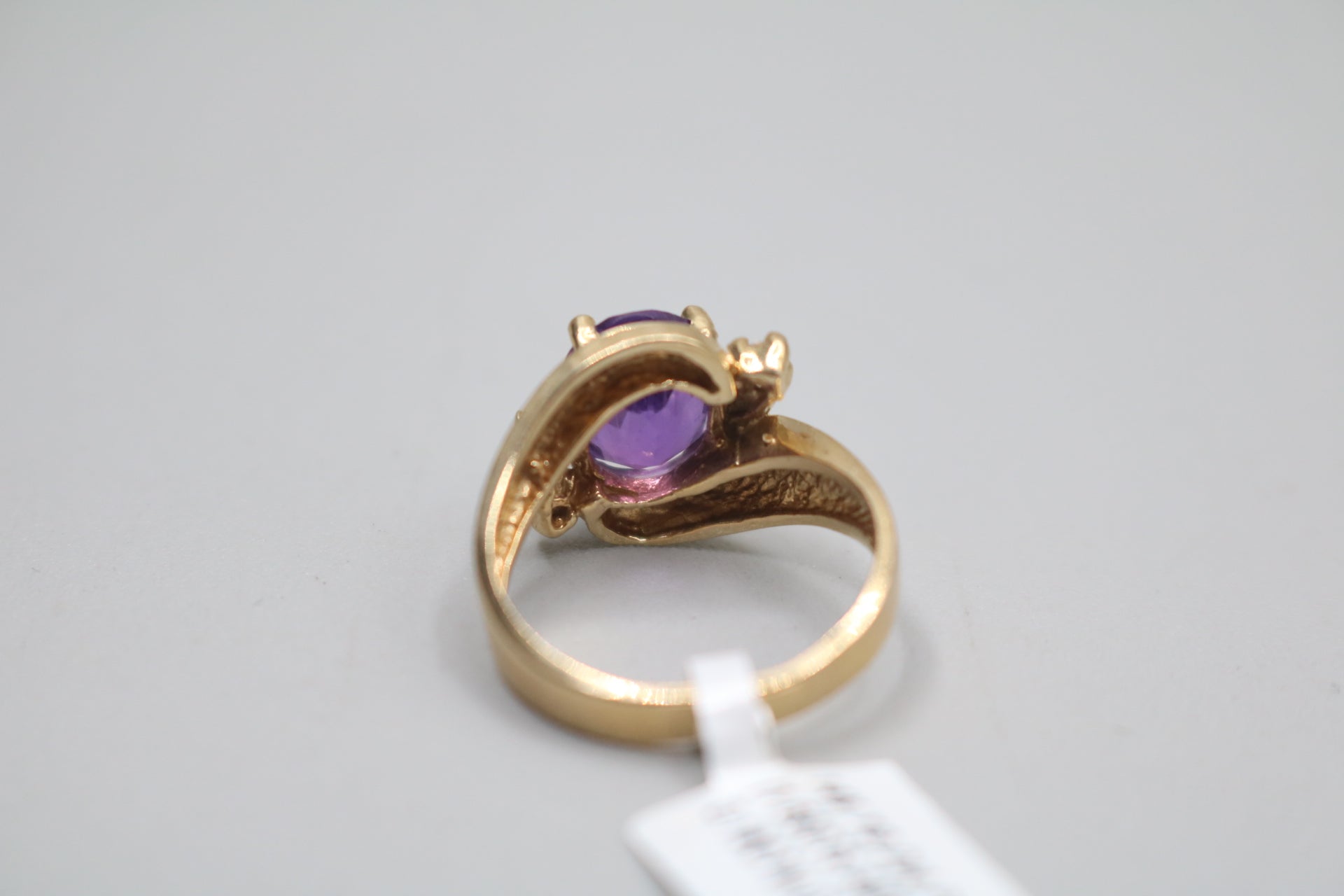 14K Yellow Gold Diamond Bypass Amethyst Ring (Size 6)