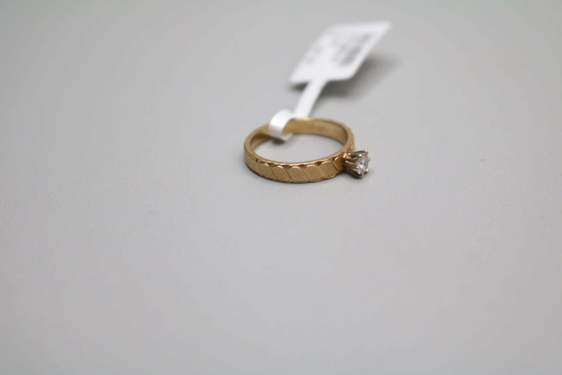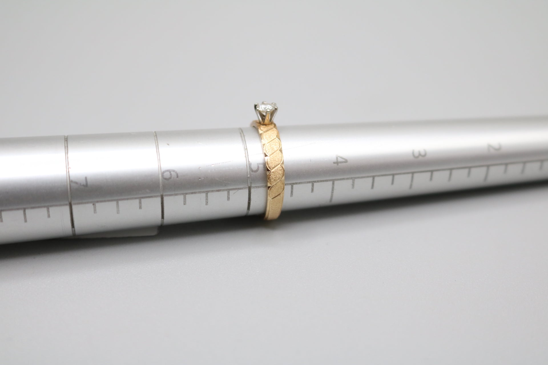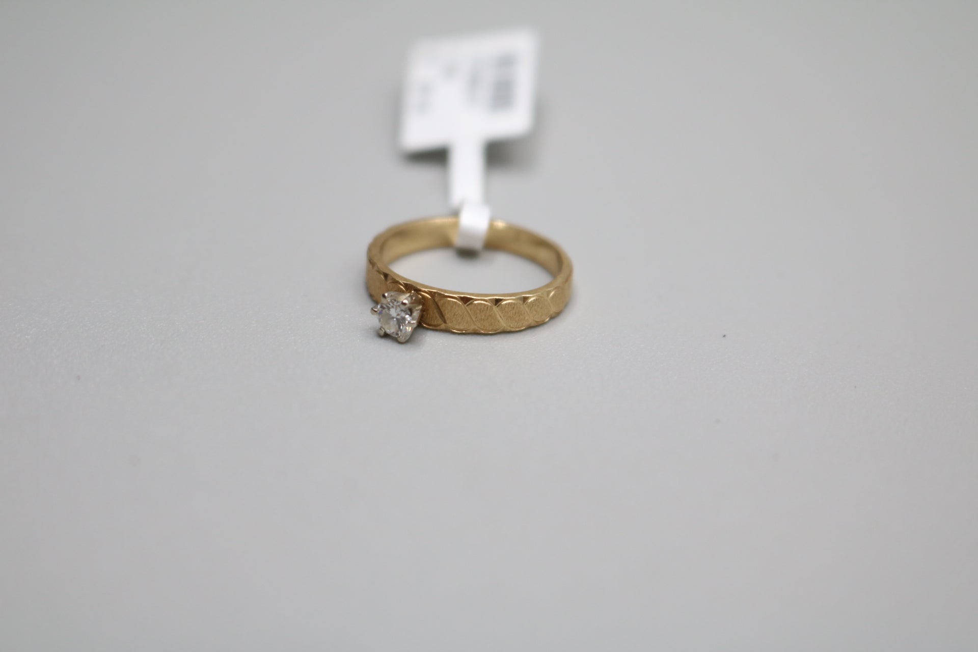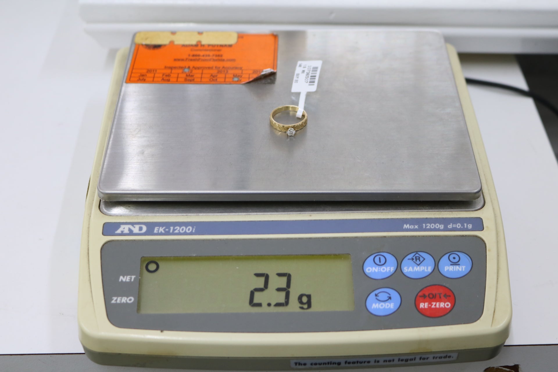 Take a look at this exquisite 14K Yellow Gold Diamond Promise Ring (Size 4 3/4) we have up for sale. This ring has been professionally cleaned and polished to bring out its dazzling beauty. The ring boasts a Promise style design with a center-round 0.15CTW brilliant diamond that has a remarkable color of G-H and clarity of SI-1. The ring is a size 4 3/4 and weighs an impressive 2.3 grams. We have included detailed pictures for you to examine the cosmetic details of the item you are purchasing. Don't miss this opportunity to make it yours today! With a 30% deposit, our convenient layaway plan is available, for additional information, please contact us. You can either pick it up in-store during regular business hours or have it shipped to you with tracking information.
