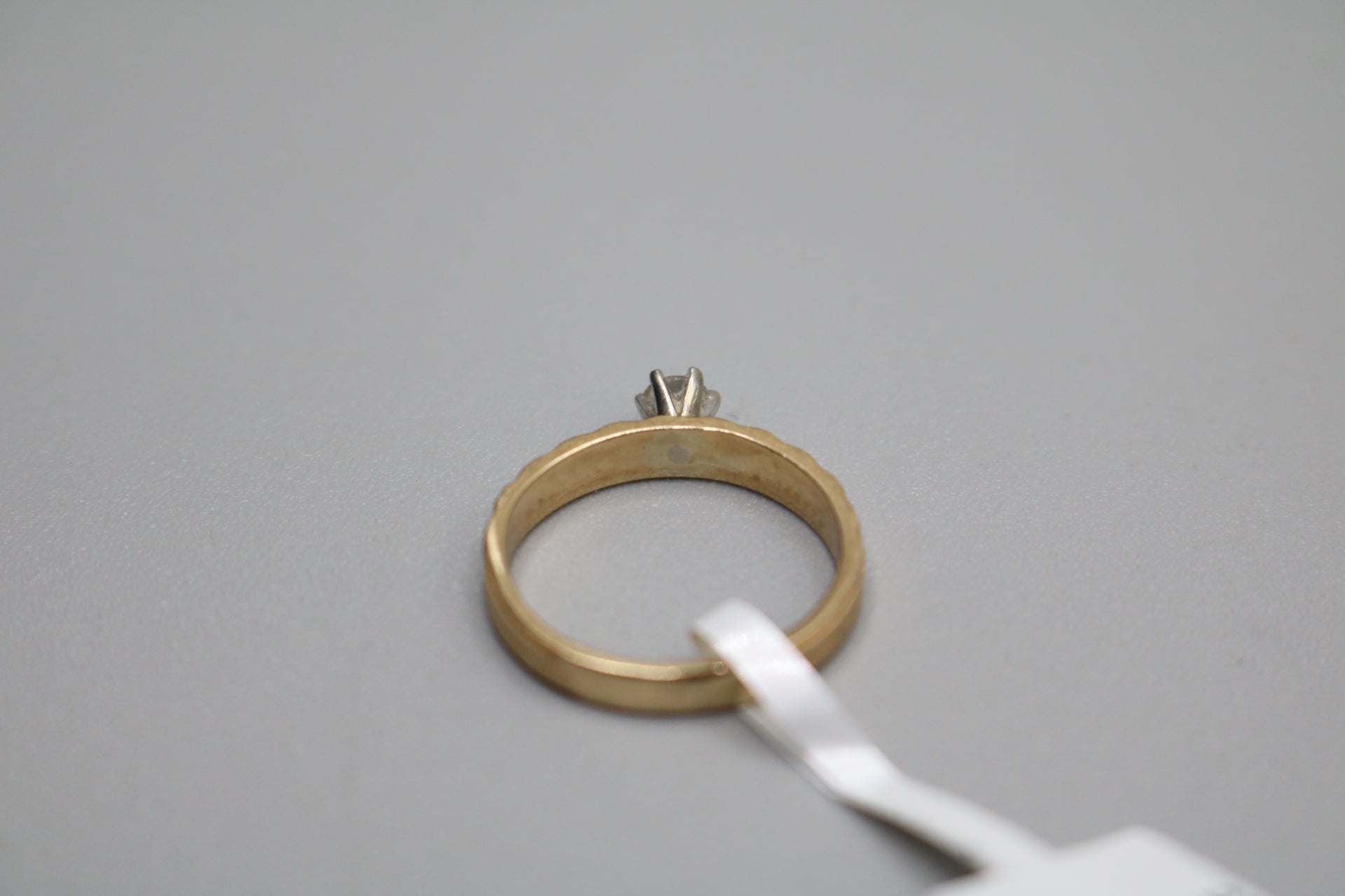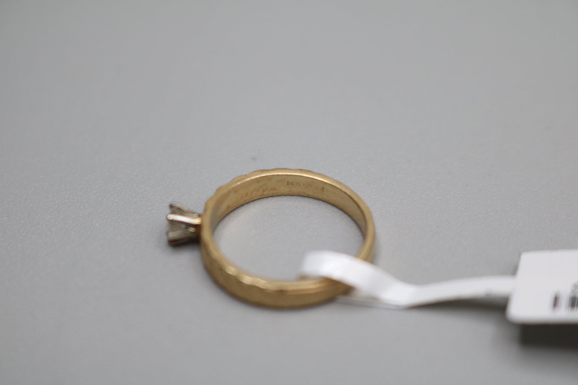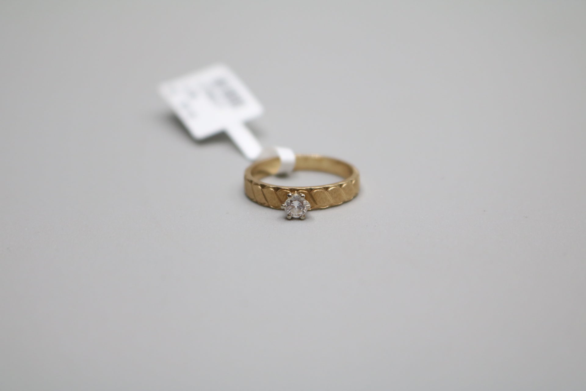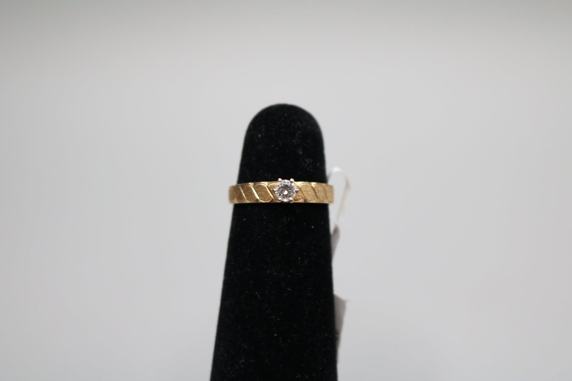 Take a look at this exquisite 14K Yellow Gold Diamond Promise Ring (Size 4 3/4) we have up for sale. This ring has been professionally cleaned and polished to bring out its dazzling beauty. The ring boasts a Promise style design with a center-round 0.15CTW brilliant diamond that has a remarkable color of G-H and clarity of SI-1. The ring is a size 4 3/4 and weighs an impressive 2.3 grams. We have included detailed pictures for you to examine the cosmetic details of the item you are purchasing. Don't miss this opportunity to make it yours today! With a 30% deposit, our convenient layaway plan is available, for additional information, please contact us. You can either pick it up in-store during regular business hours or have it shipped to you with tracking information.
