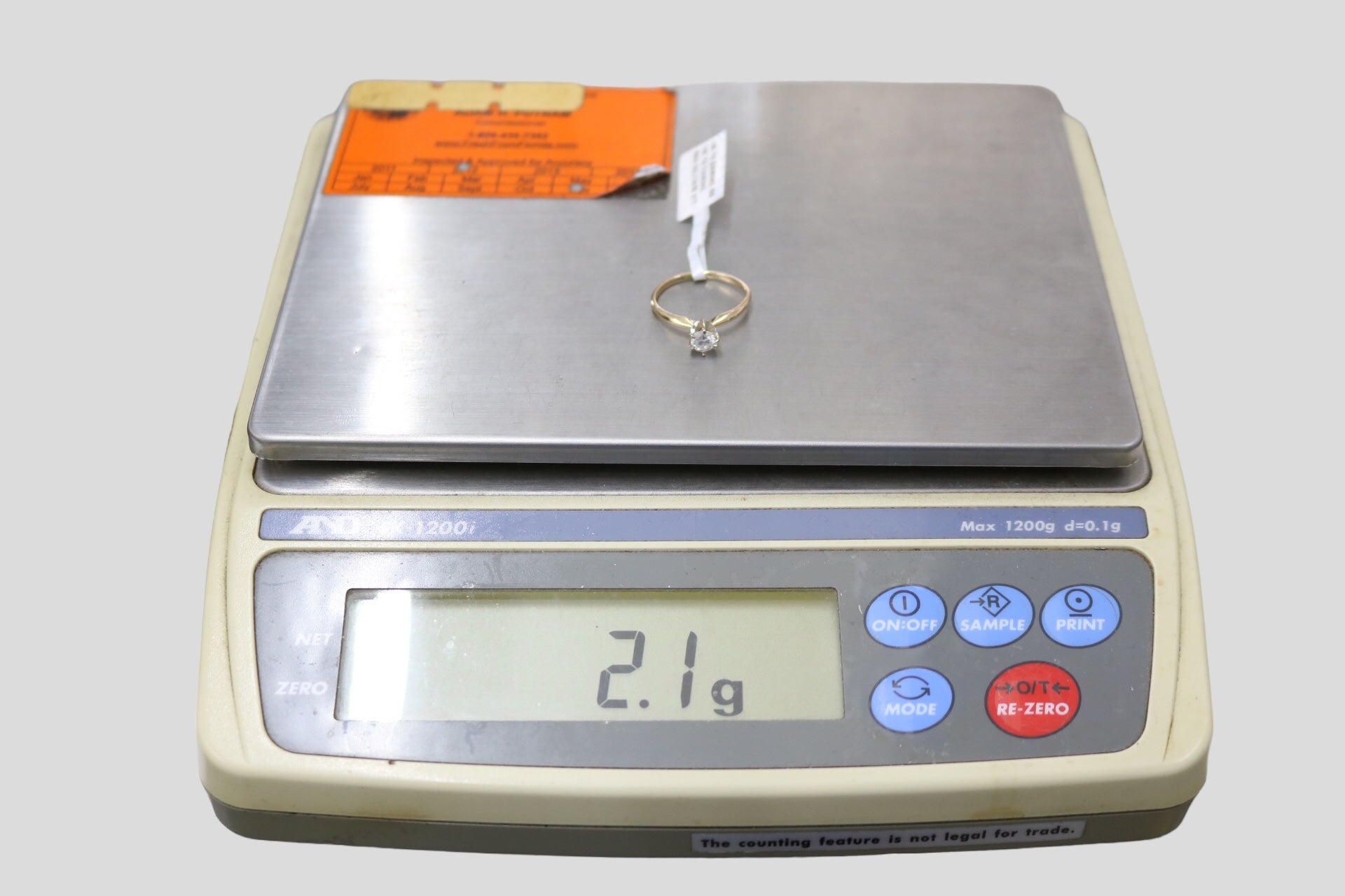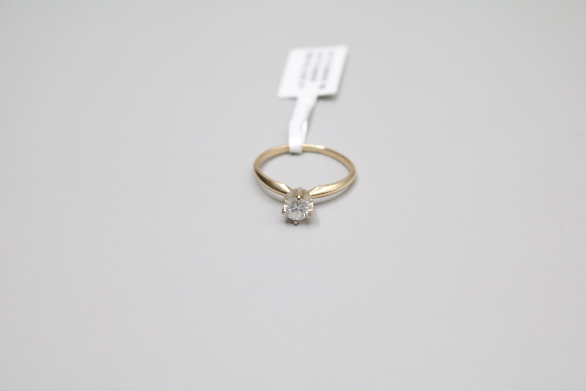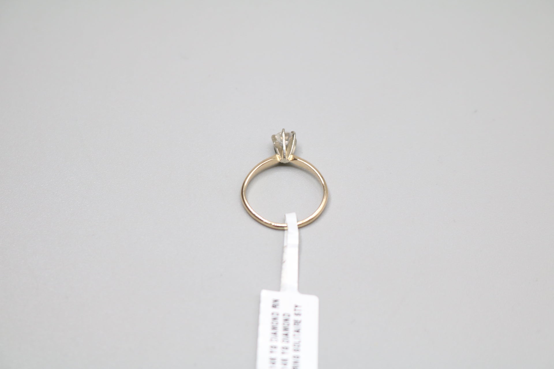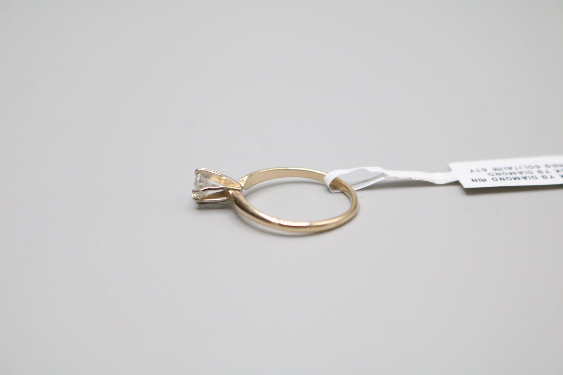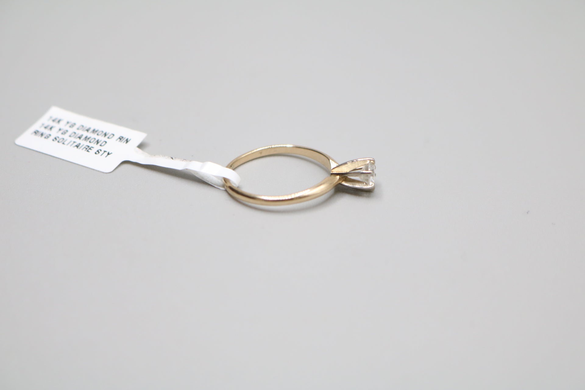 We're pleased to offer a stunning pre-owned 14K Yellow Gold Diamond Solitaire Ring (0.40 CTW) (Size 7 1/4) that's been professionally cleaned to look brand new. Weighing 2.1 grams, this ring is an embodiment of elegance and sophistication. The diamond has a color/clarity of G-H/SI1. Please take a look at the pictures to appreciate its beauty. If you’re interested in the ring, we offer a layaway plan with a 30% deposit. For additional information, please contact us. You can purchase the item anytime during regular business hours or opt for shipping, which includes tracking information. Don't miss this opportunity to own a one-of-a-kind piece of jewelry. Place your order today!