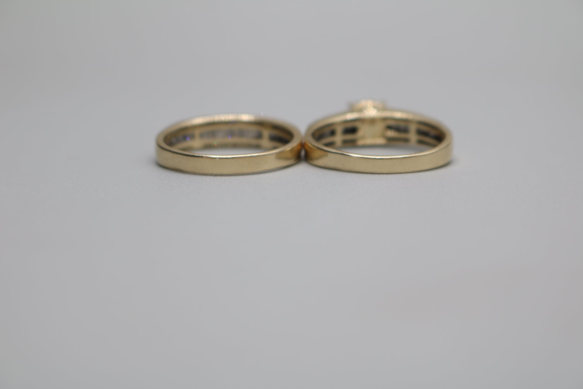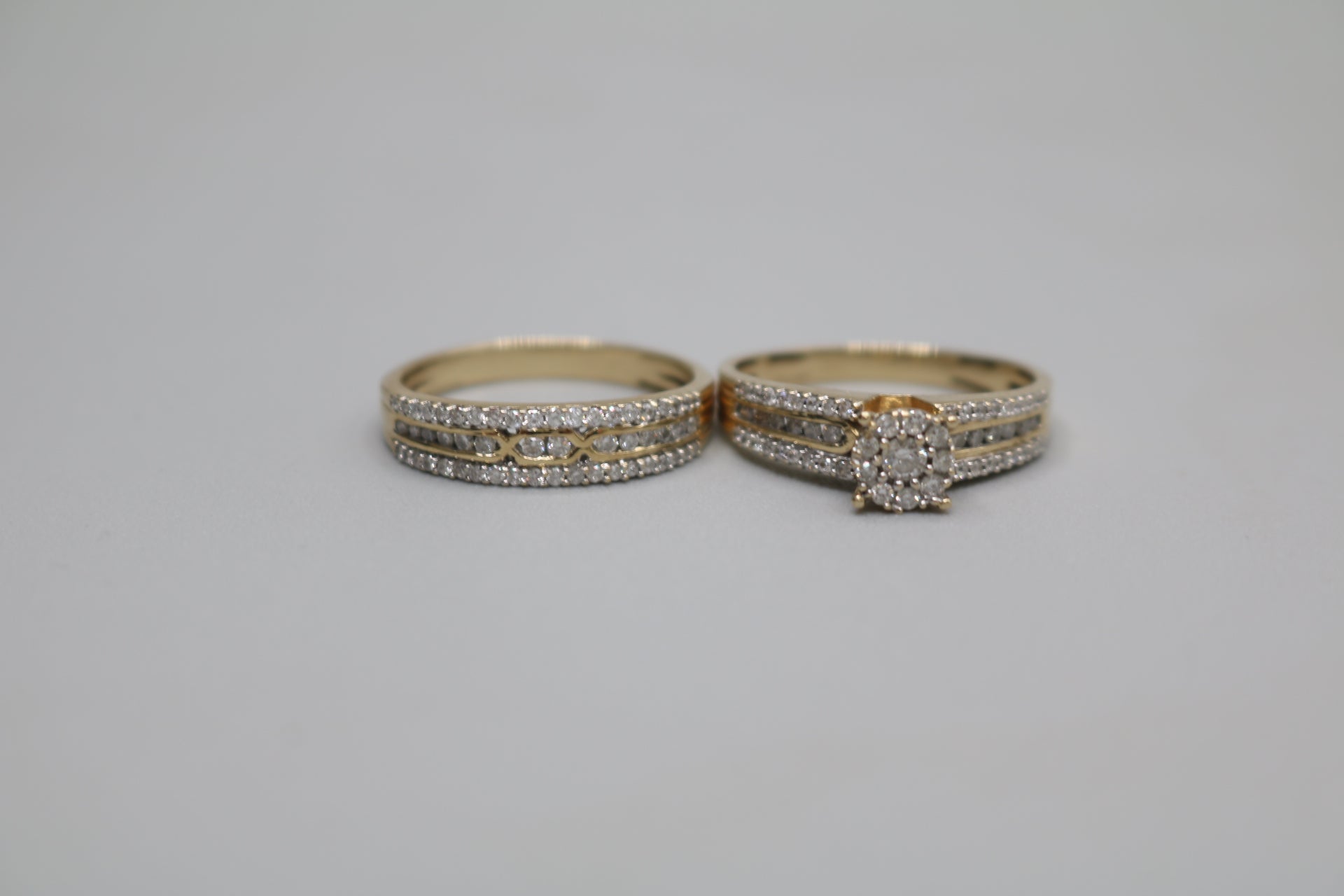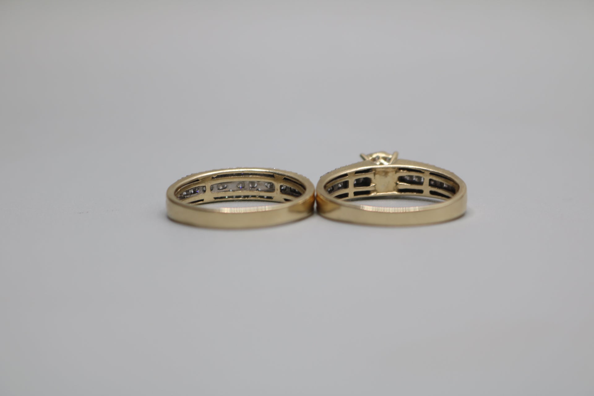 Check out this stunning pre-owned 14K Yellow Gold Engagement Set (0.79 CTW) (Size 7 & 1/2). The diamonds have a G-H color and SI1 clarity. Both rings are a size 7 & 1/2. It weighs 5.5 grams. The ring is also available to put on layaway with a 30% deposit. Contact us for further details. Purchase in-store during regular business hours or online with shipping that includes tracking information. Be sure to examine the pictures for all the cosmetic details before making your purchase.