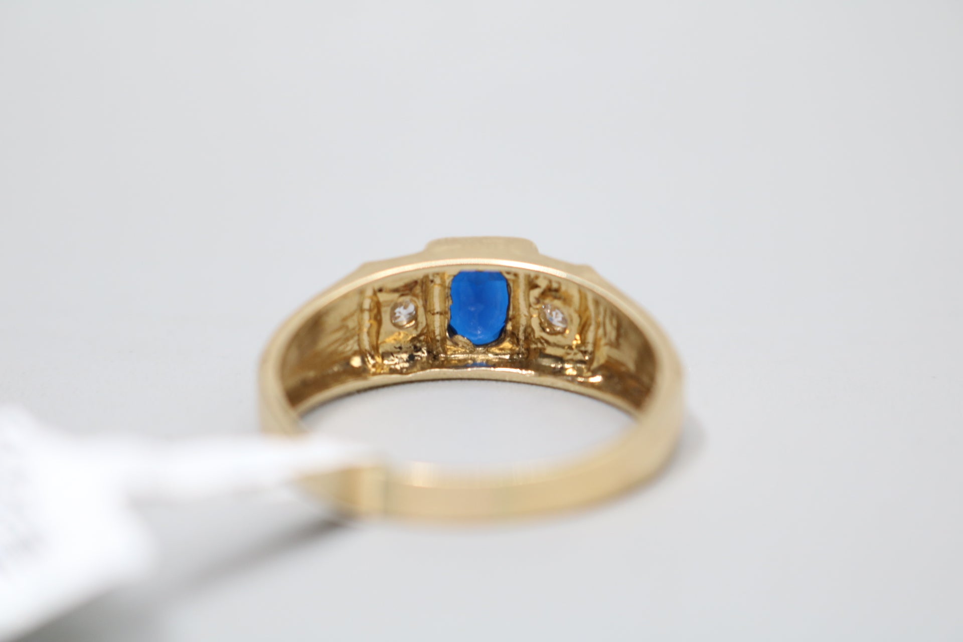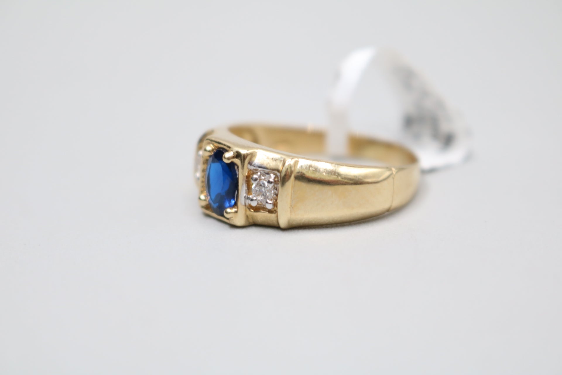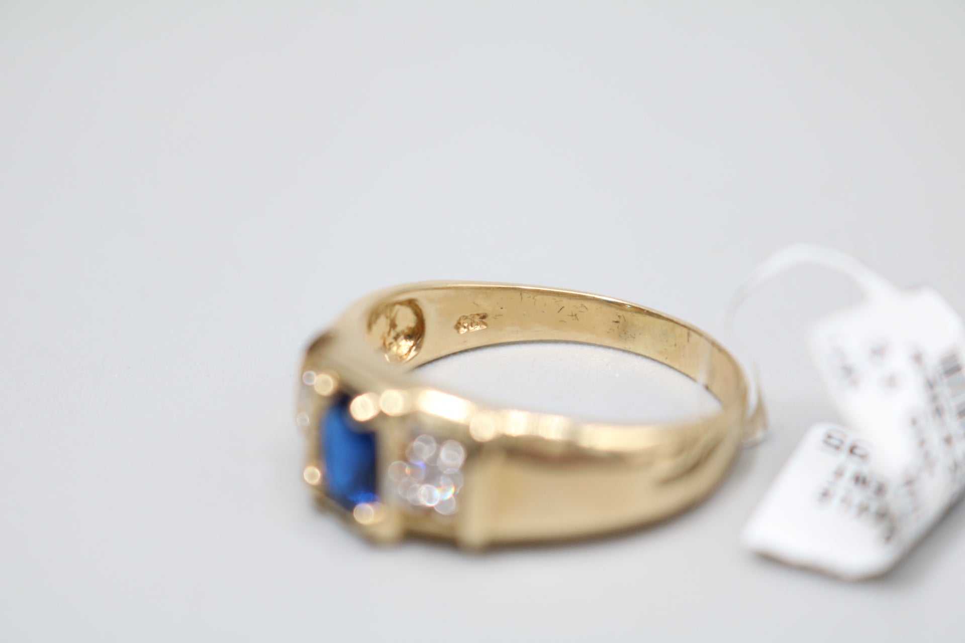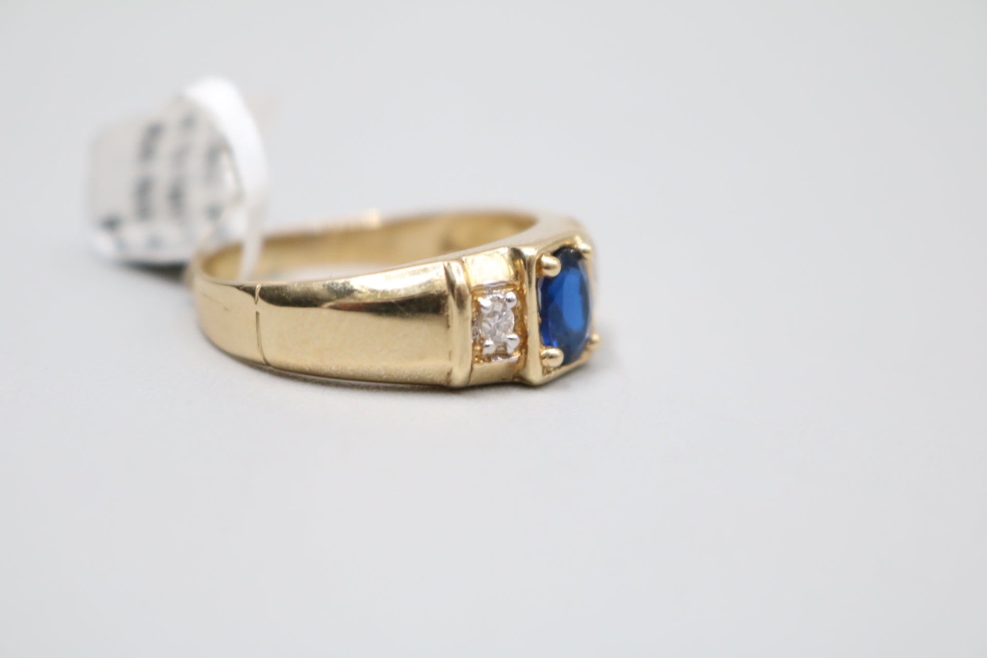 For sale, we present an exquisite 14K Yellow Gold Fancy Style Men's Ring featuring a stunning center blue stone, elegantly crafted in a size 11 1/4. This remarkable piece has been professionally cleaned and polished, ensuring it shines beautifully. Weighing approximately 5.3 grams, it’s not just a ring, but a statement of style and sophistication. We encourage you to take a moment to view all the pictures provided for a comprehensive understanding of this captivating item. To make this special purchase even more accessible, we offer a convenient layaway plan with just a 30% deposit. For further details or inquiries, please don’t hesitate to reach out. You are welcome to pick up your purchase during our regular business hours, or if you prefer, we can ship it directly to you. Rest assured, shipping includes tracking information and insurance for your peace of mind. Don’t miss the chance to own this stunning ring!