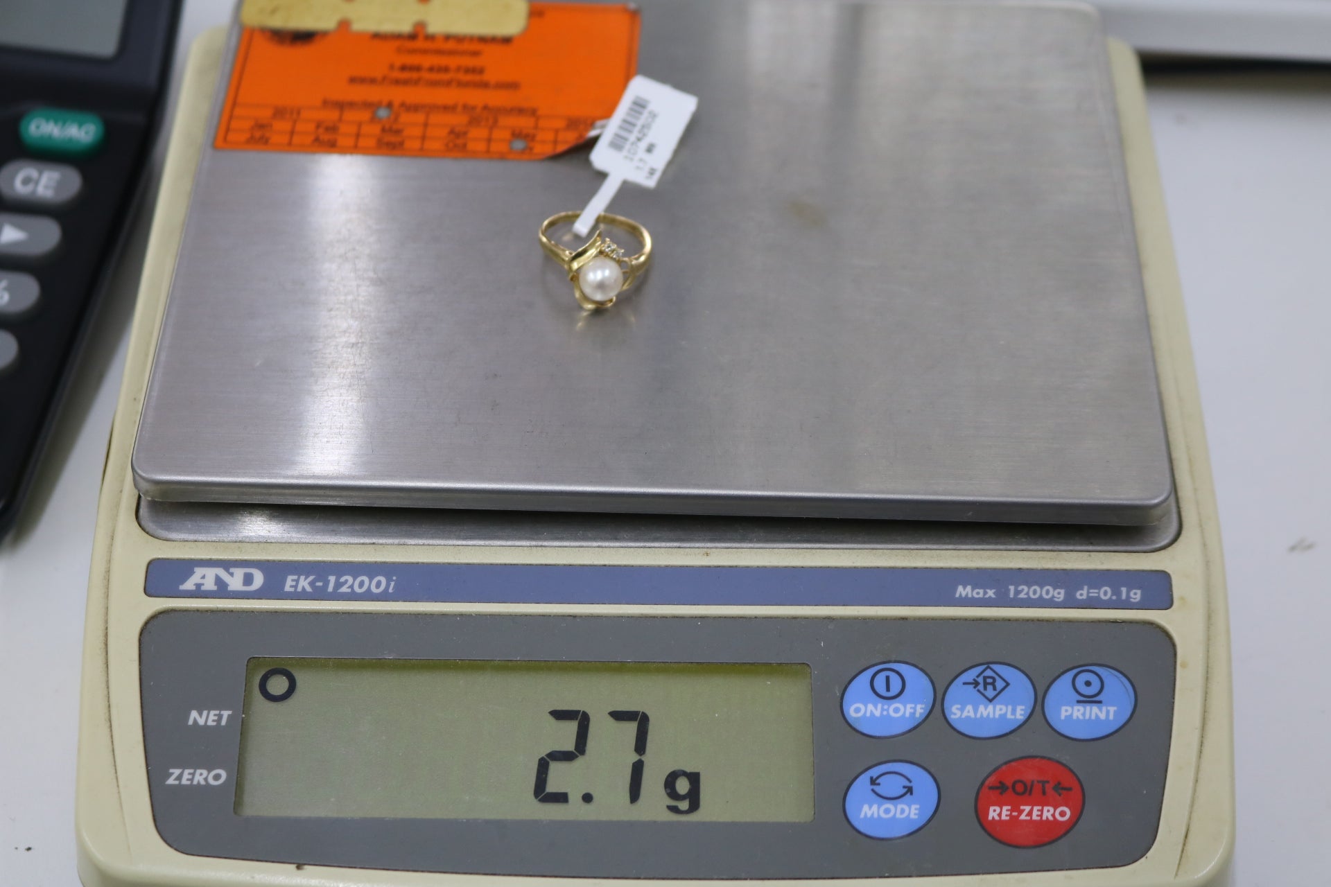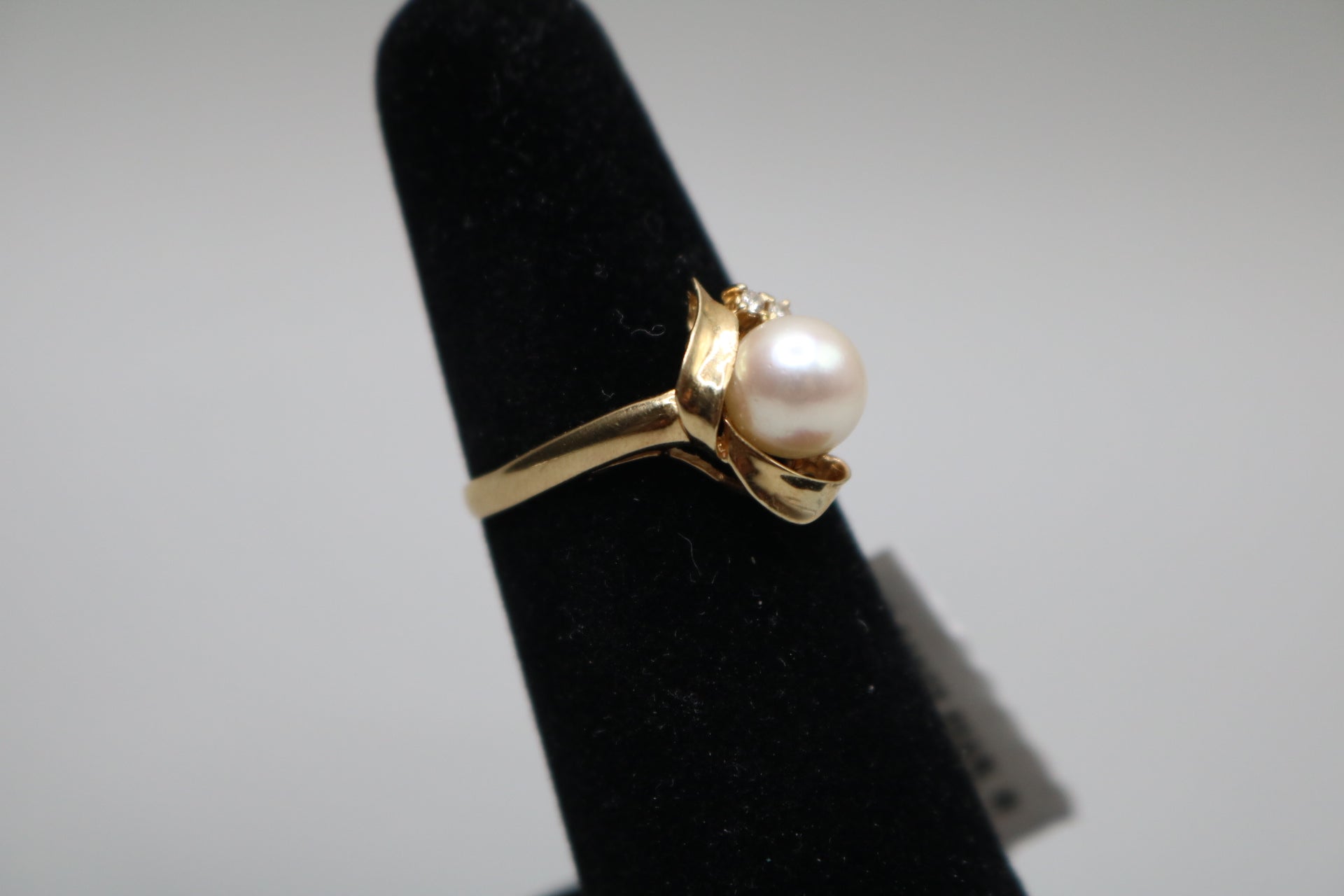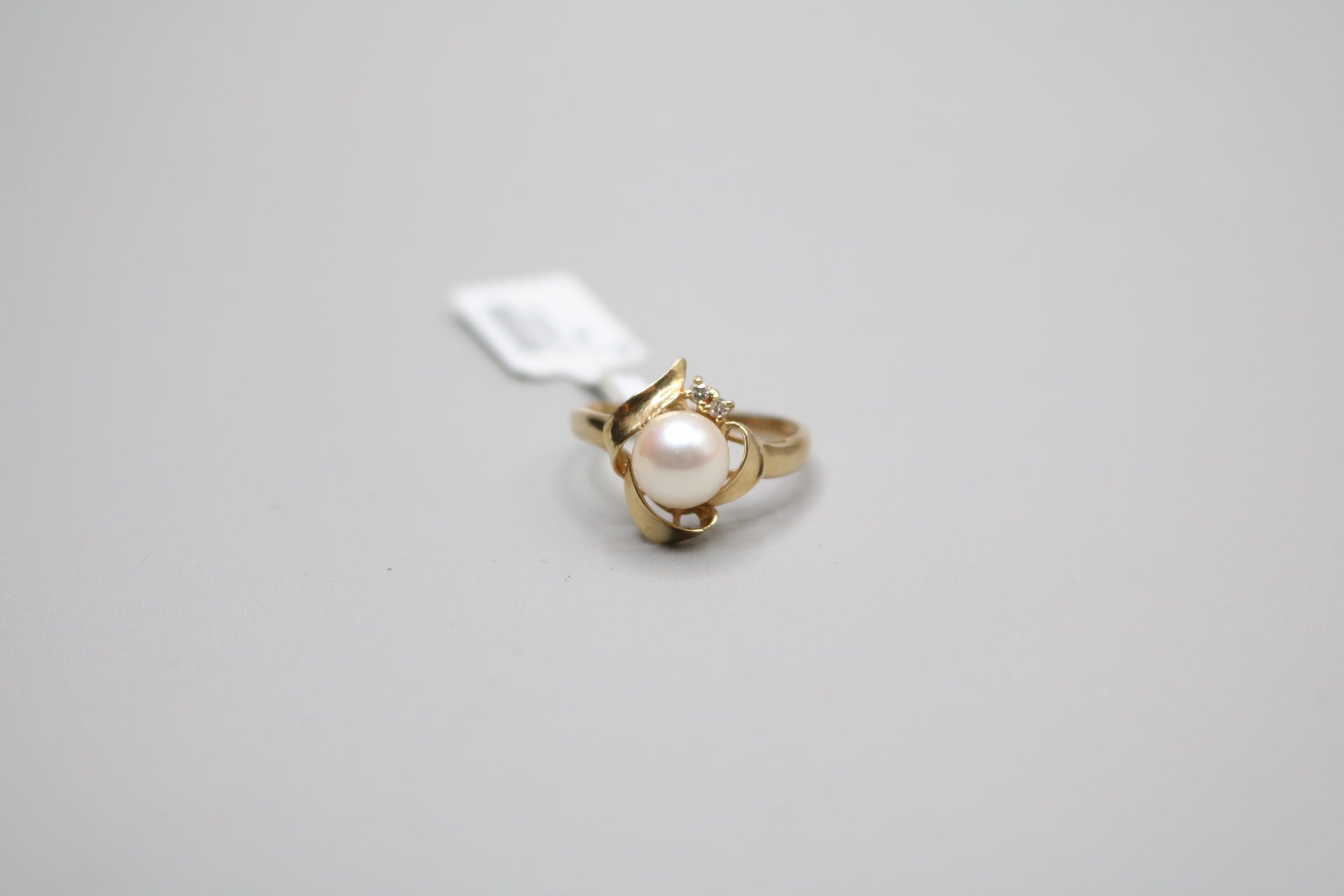 14K Yellow Gold Fancy Vintage Pearl Diamond Ring (Size 7 3/4)