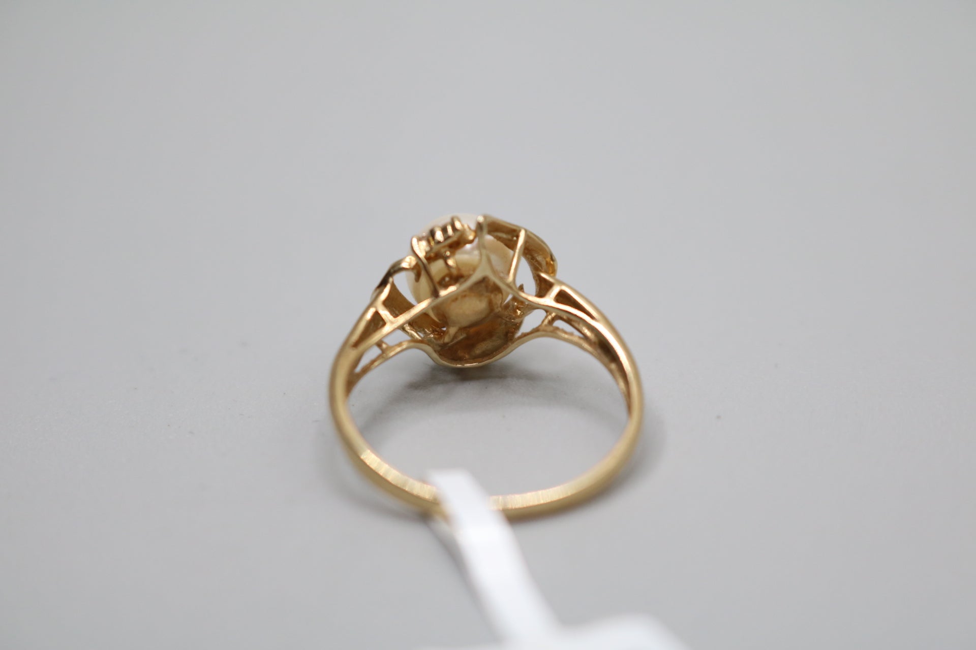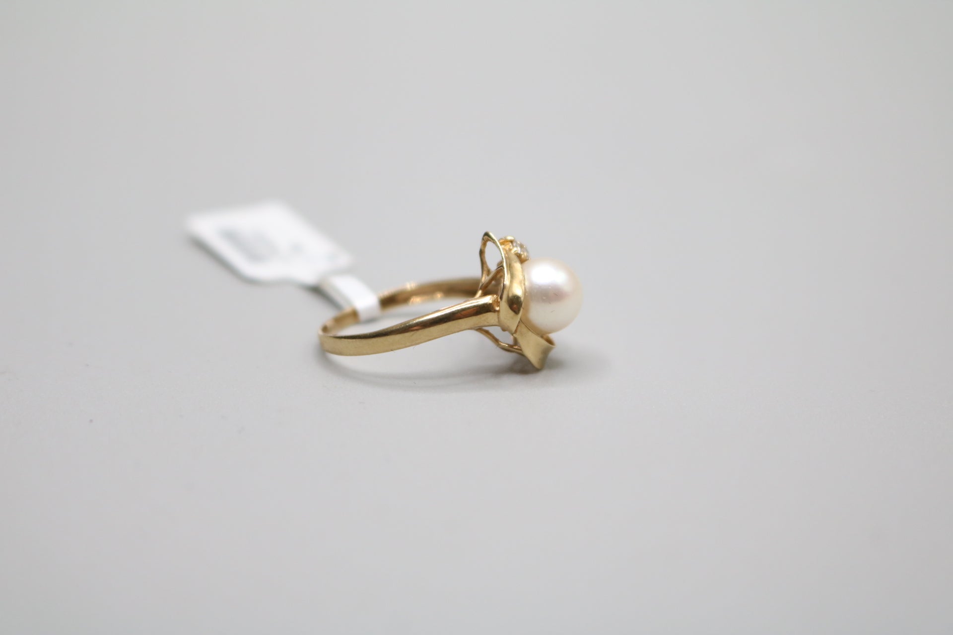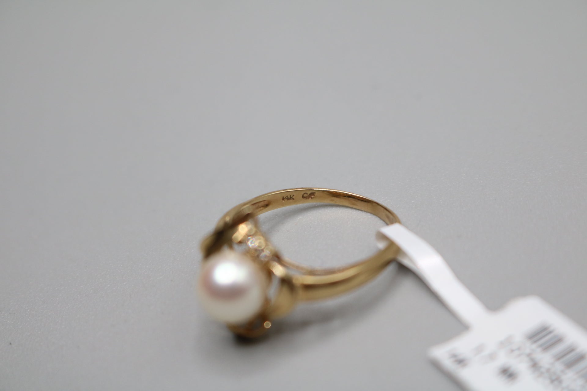 14K Yellow Gold Fancy Vintage Pearl Diamond Ring (Size 7 3/4)