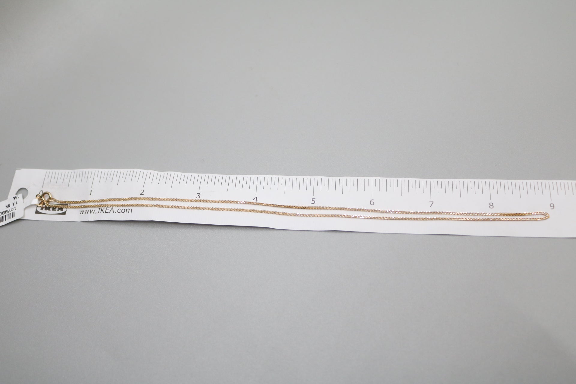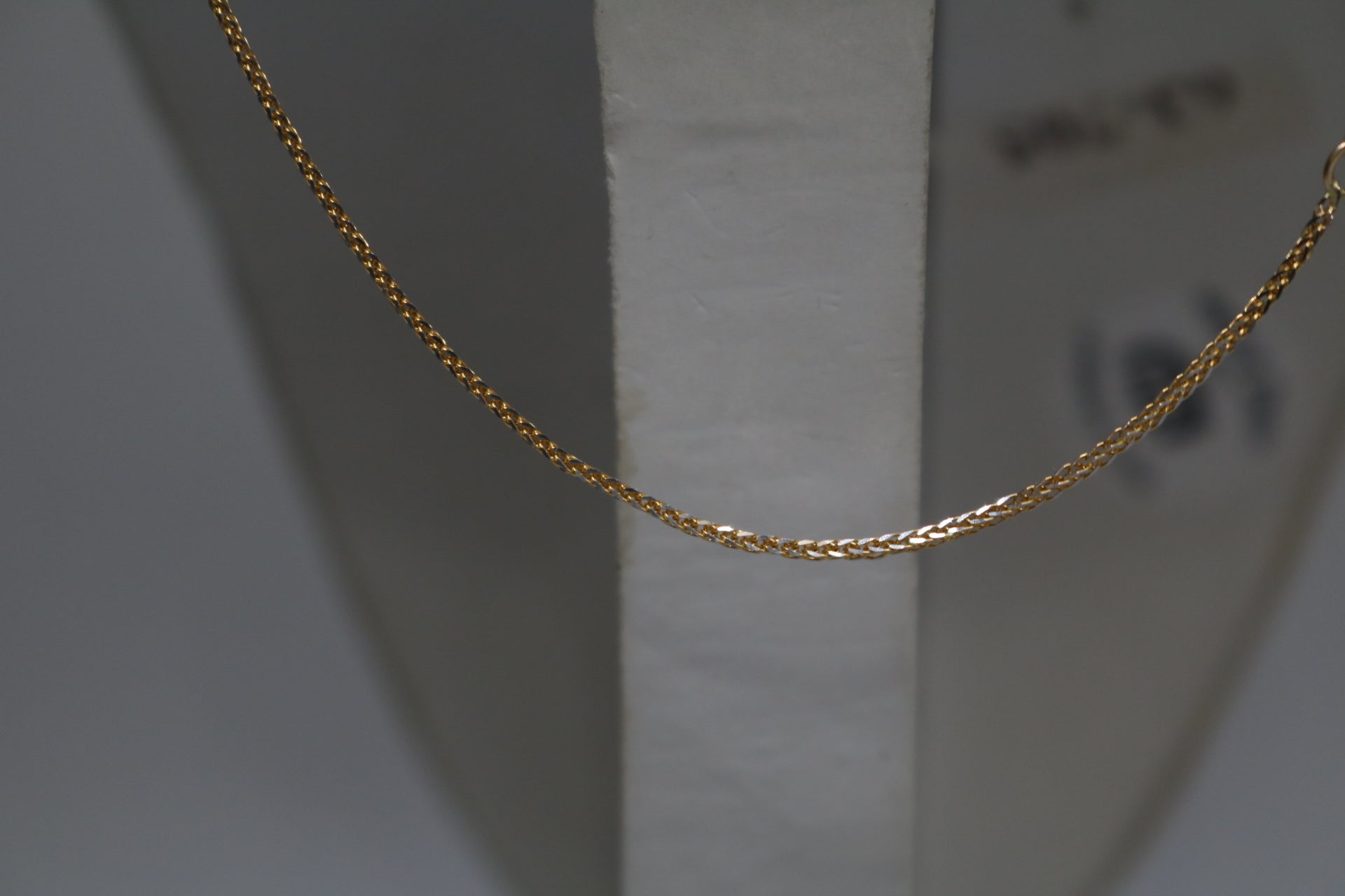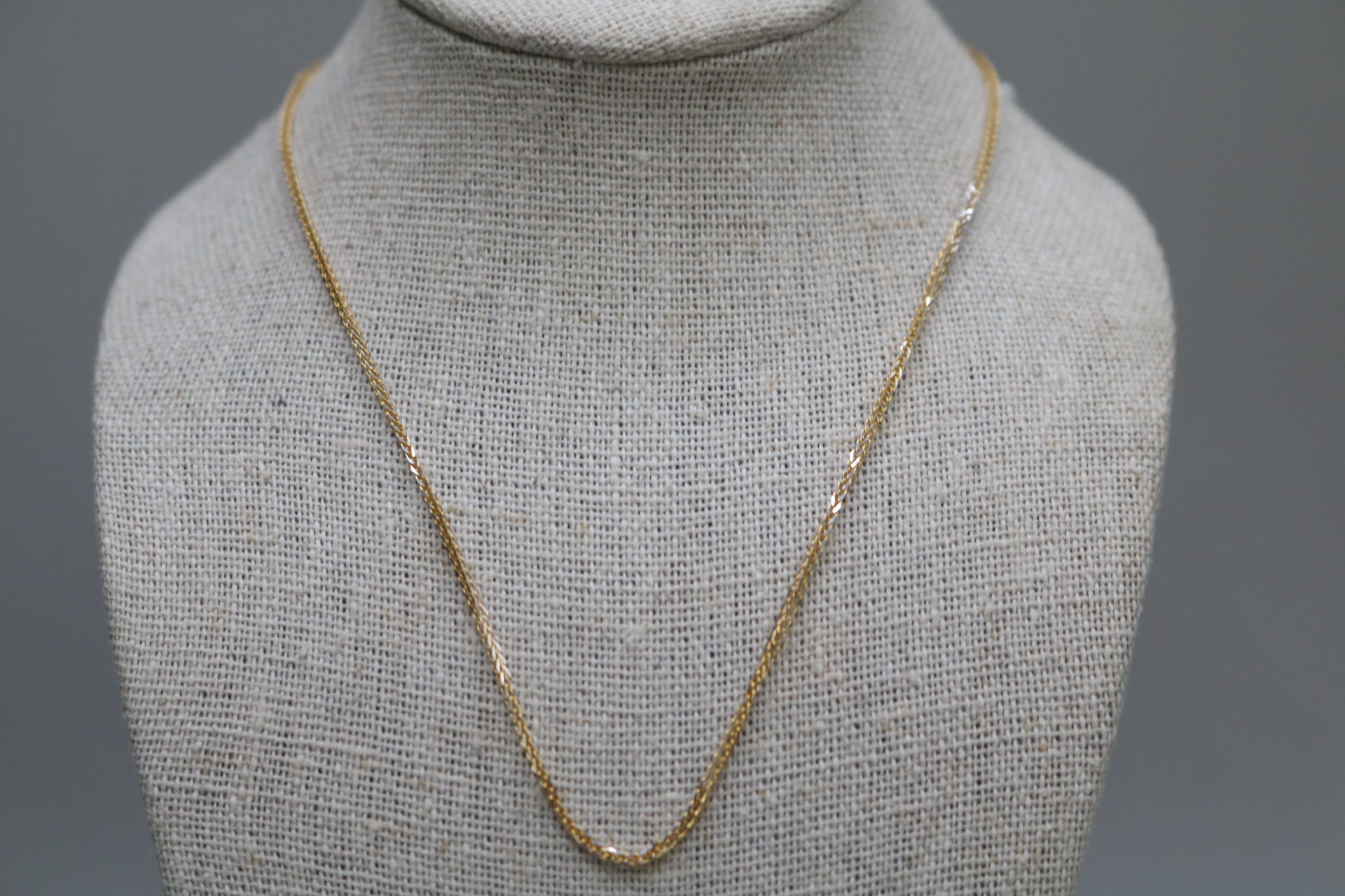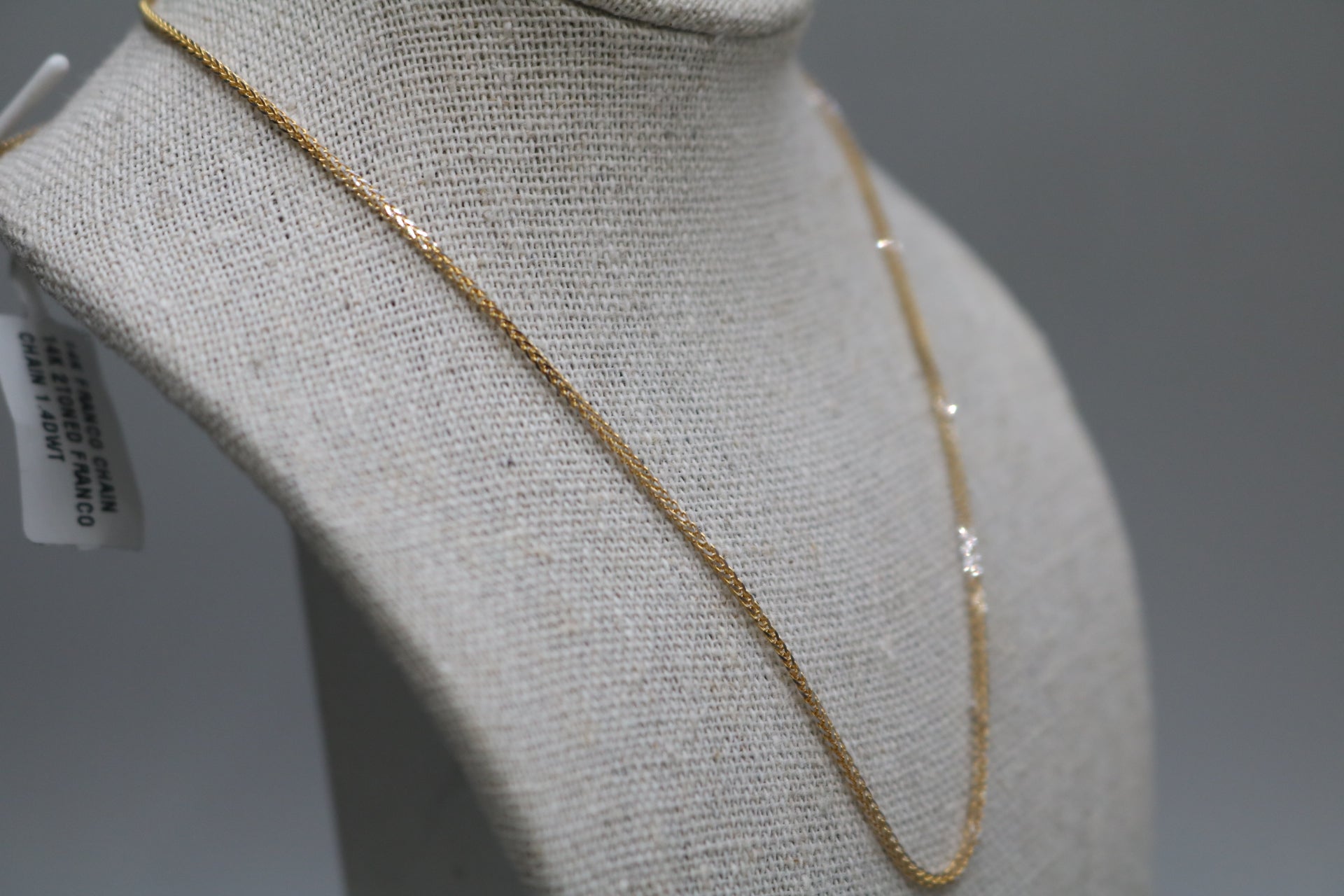 For sale is a stunning pre-owned 14K Yellow Gold Franco Necklace, measuring 18 inches in length, that has been professionally cleaned and polished to perfection. This exquisite necklace features a striking Franco design and weighs a delicate 2.2 grams, making it a stylish addition to any jewelry collection. We invite you to examine all the pictures to appreciate the intricate design and excellent condition of this piece. To make your purchase even more convenient, we offer a layaway plan with a simple 30% deposit. You can pick up this beautiful necklace during our regular business hours, or if you prefer, we can ship it directly to you with tracking information and insurance for your peace of mind. Don't miss out on the chance to own this elegant accessory!