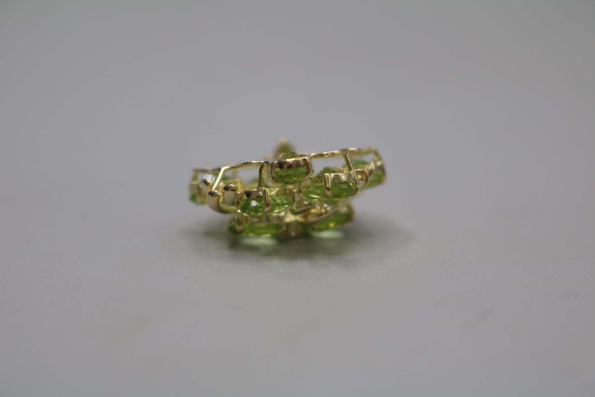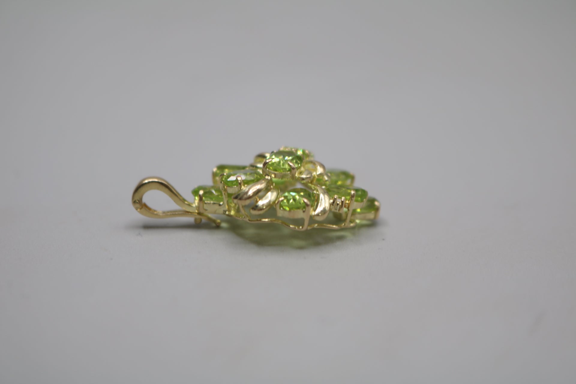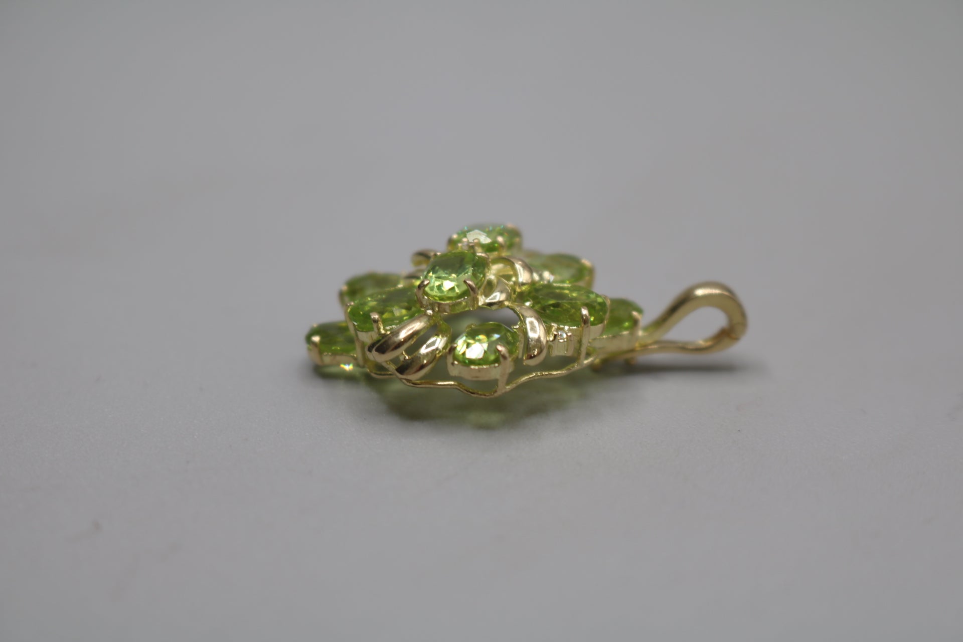 Check out this stunning pre-owned 14K Yellow Gold Green Tourmaline Charm. The charm has 10 oval-cut green tourmalines and 3 round-cut diamonds @ 0.005cts each. It weighs 5.9 grams. The charm is also available to put on layaway with a 30% deposit, contact us for further details. Purchase in-store during regular business hours or online with shipping that includes tracking information. Be sure to examine the pictures for all the cosmetic details before making your purchase.