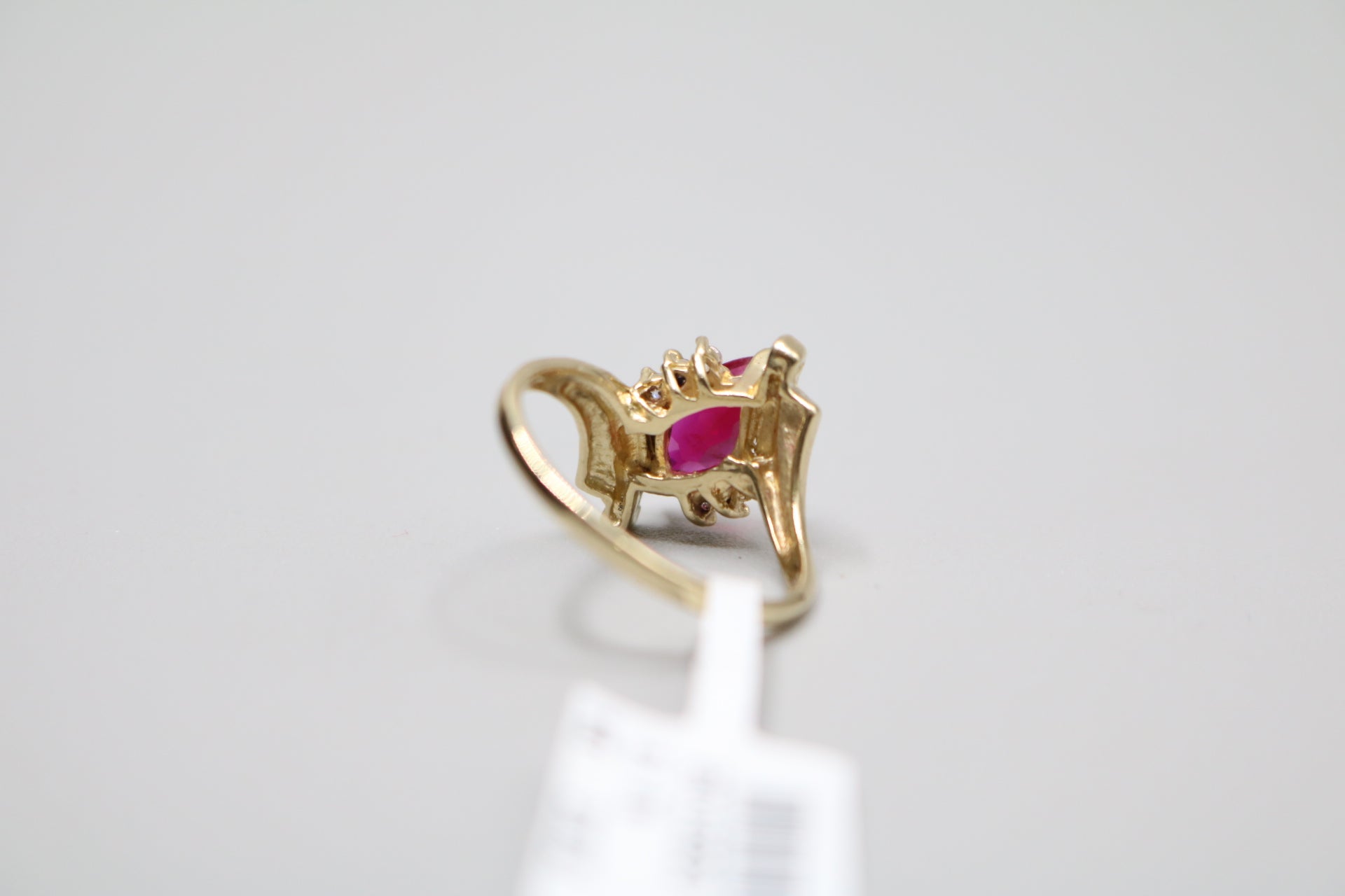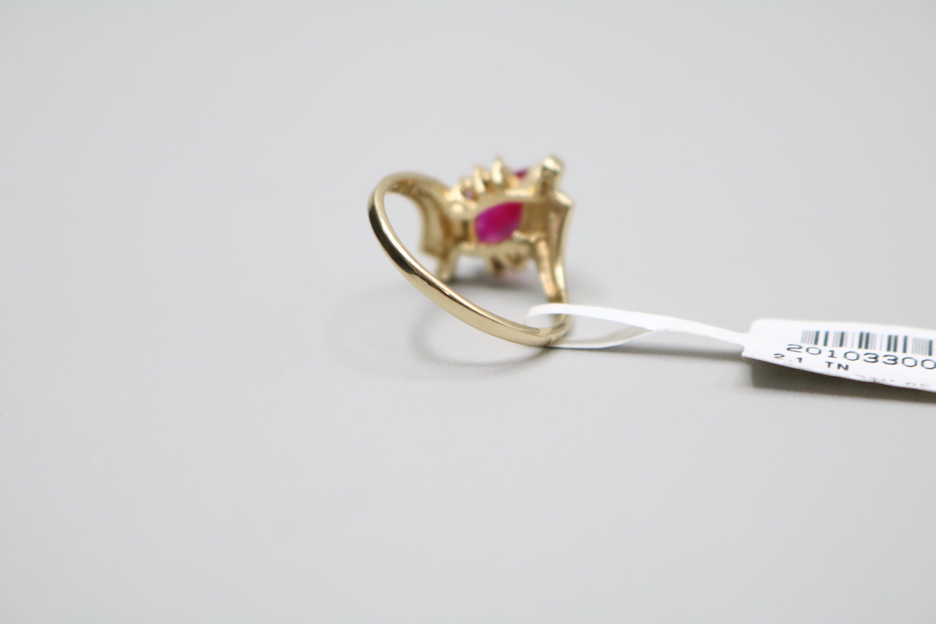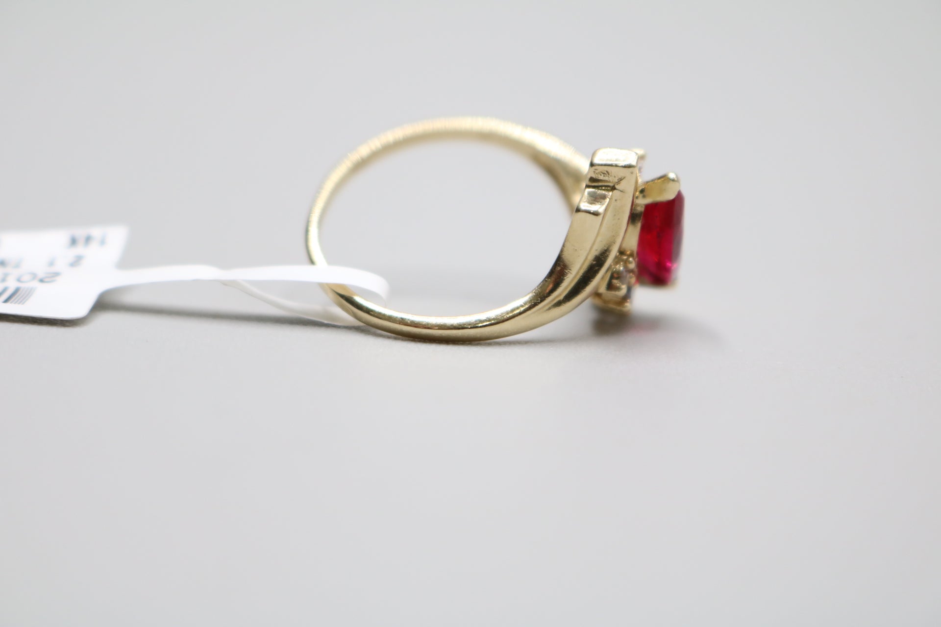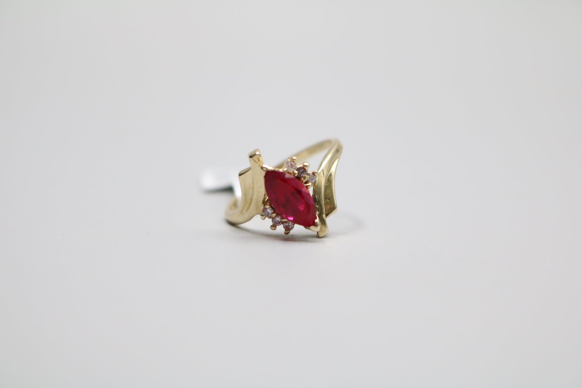 14K Yellow Gold Ring with Ruby and Clear Stones (Size 7)