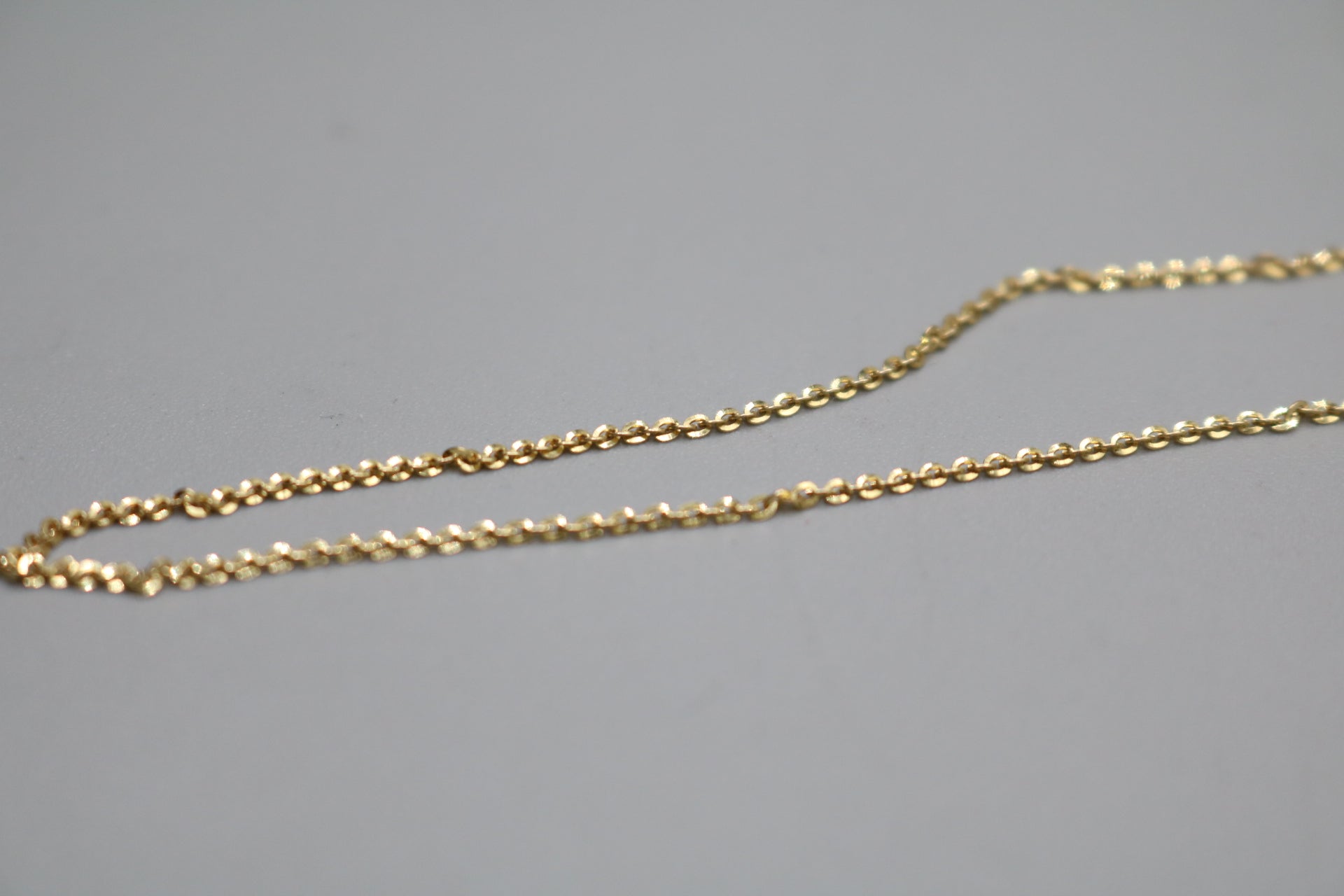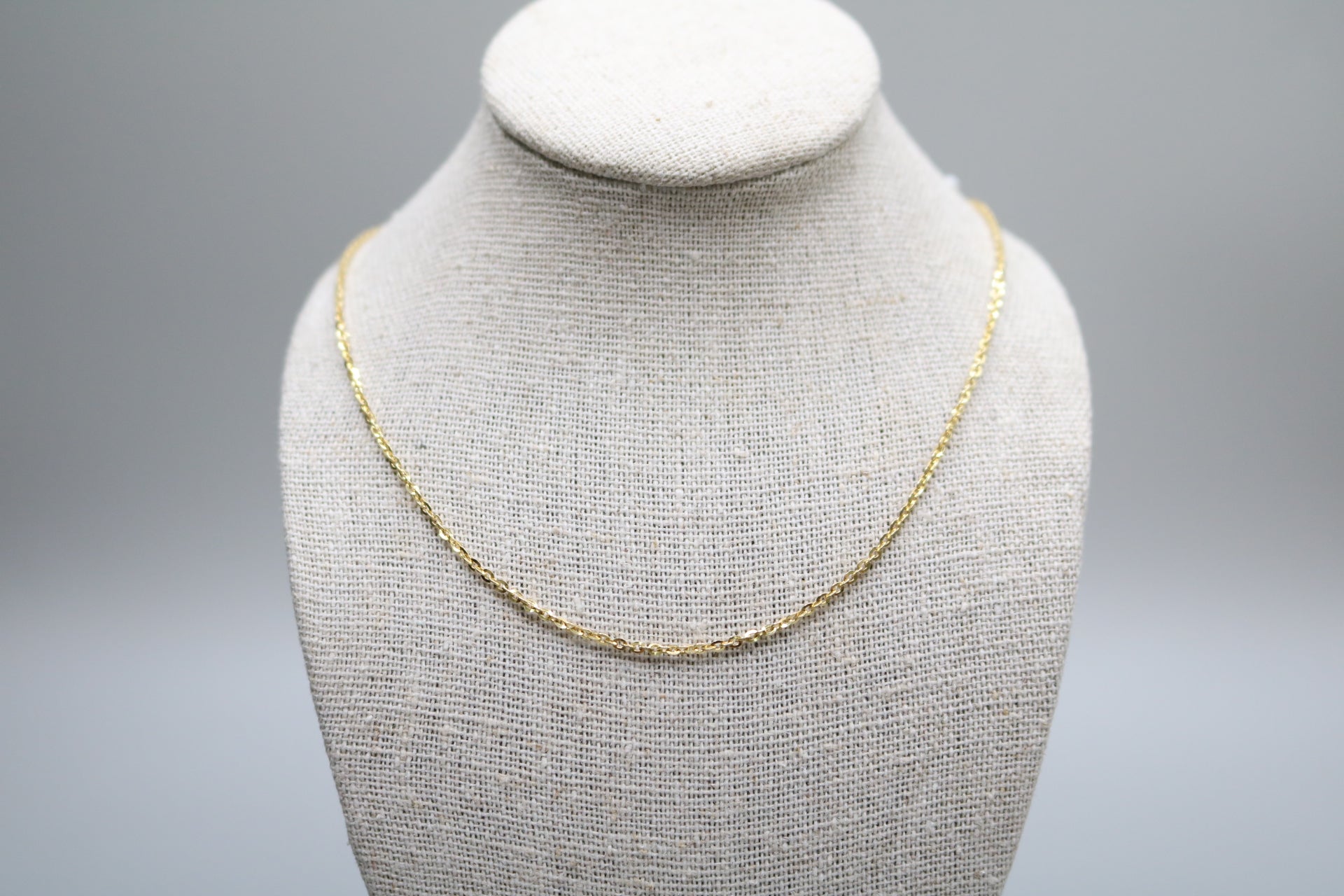 Discover elegance and sophistication with our exquisite 14K Yellow Gold Cable Necklace, measuring a stunning 18 inches in length. This beautifully crafted piece, made from genuine 14-karat gold, has been meticulously cleaned and polished to enhance its radiant yellow-gold finish. Weighing just 2.6 grams, it offers a delicate yet enduring addition to any jewelry collection. The unique cable design adds a touch of timeless charm, making it a versatile choice for both everyday wear and special occasions. To ensure you’re confident in your purchase, we encourage you to review all the detailed pictures provided. We also offer a convenient layaway plan with just a 30% deposit, making it easier to secure this piece. You can choose to pick up the necklace during our regular business hours or opt for shipping with tracking information for added peace of mind. Elevate your jewelry collection with this stunning 14K Yellow Gold Cable Necklace—your perfect blend of luxury and style. For additional information, please contact us.