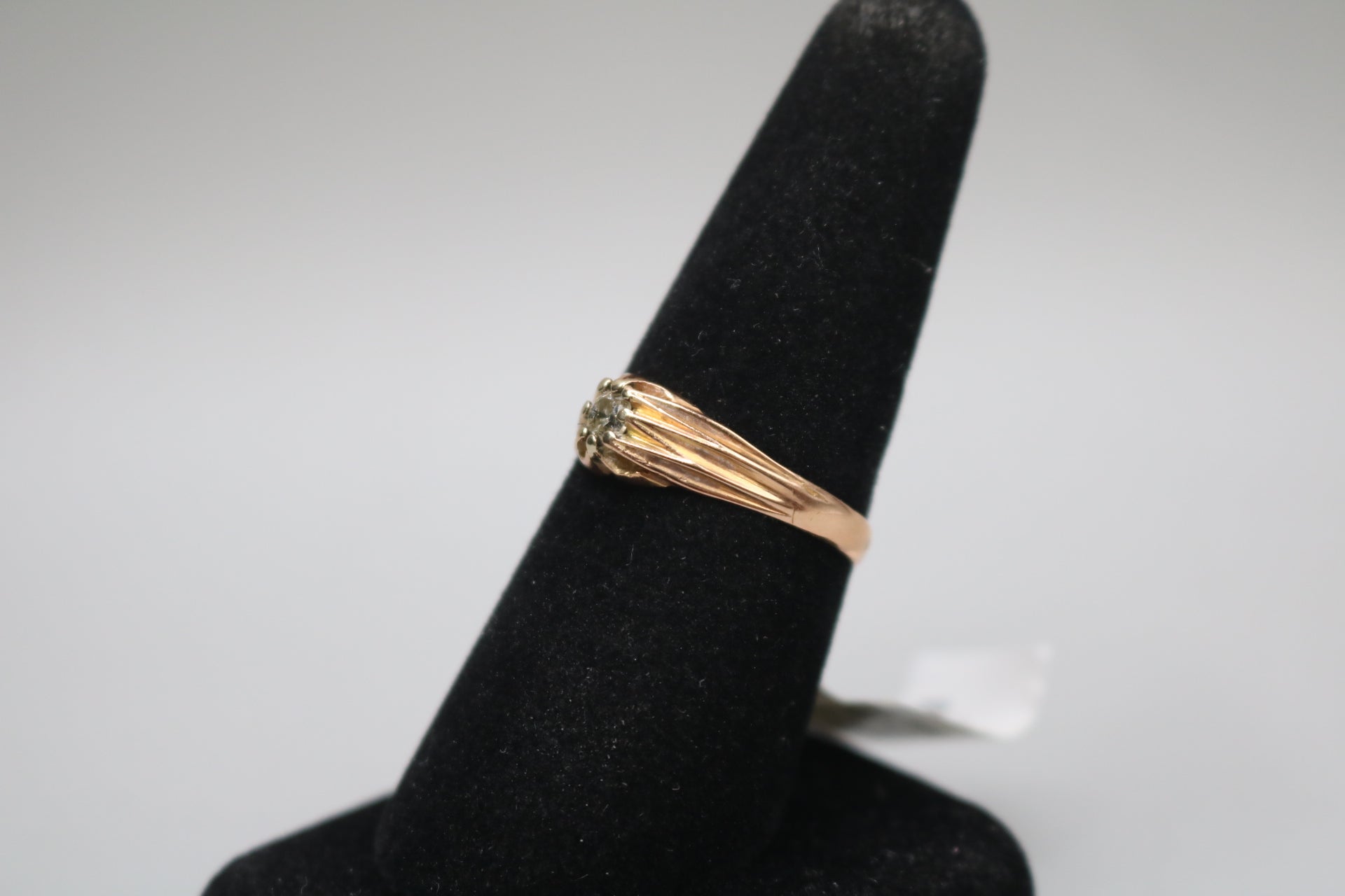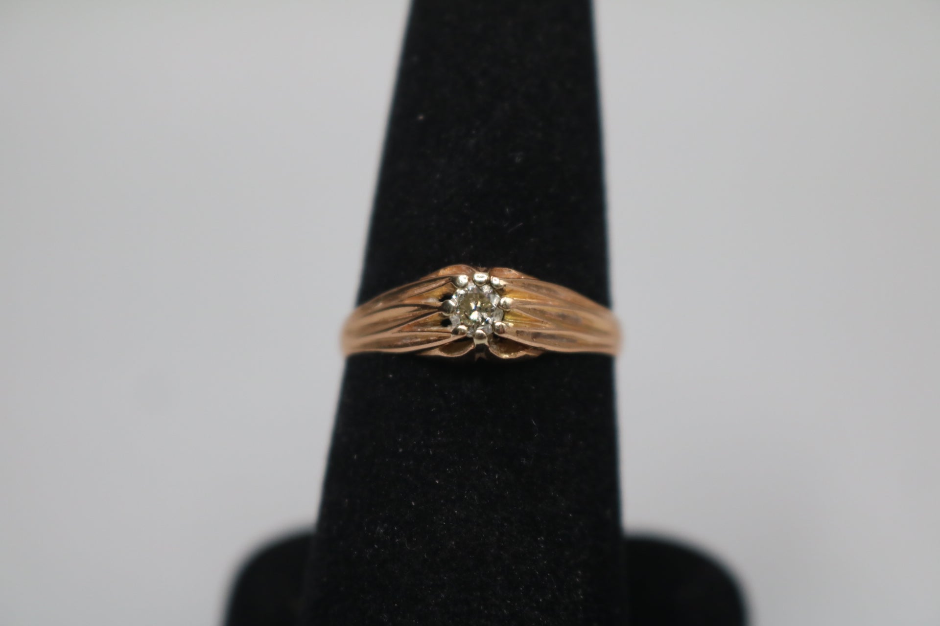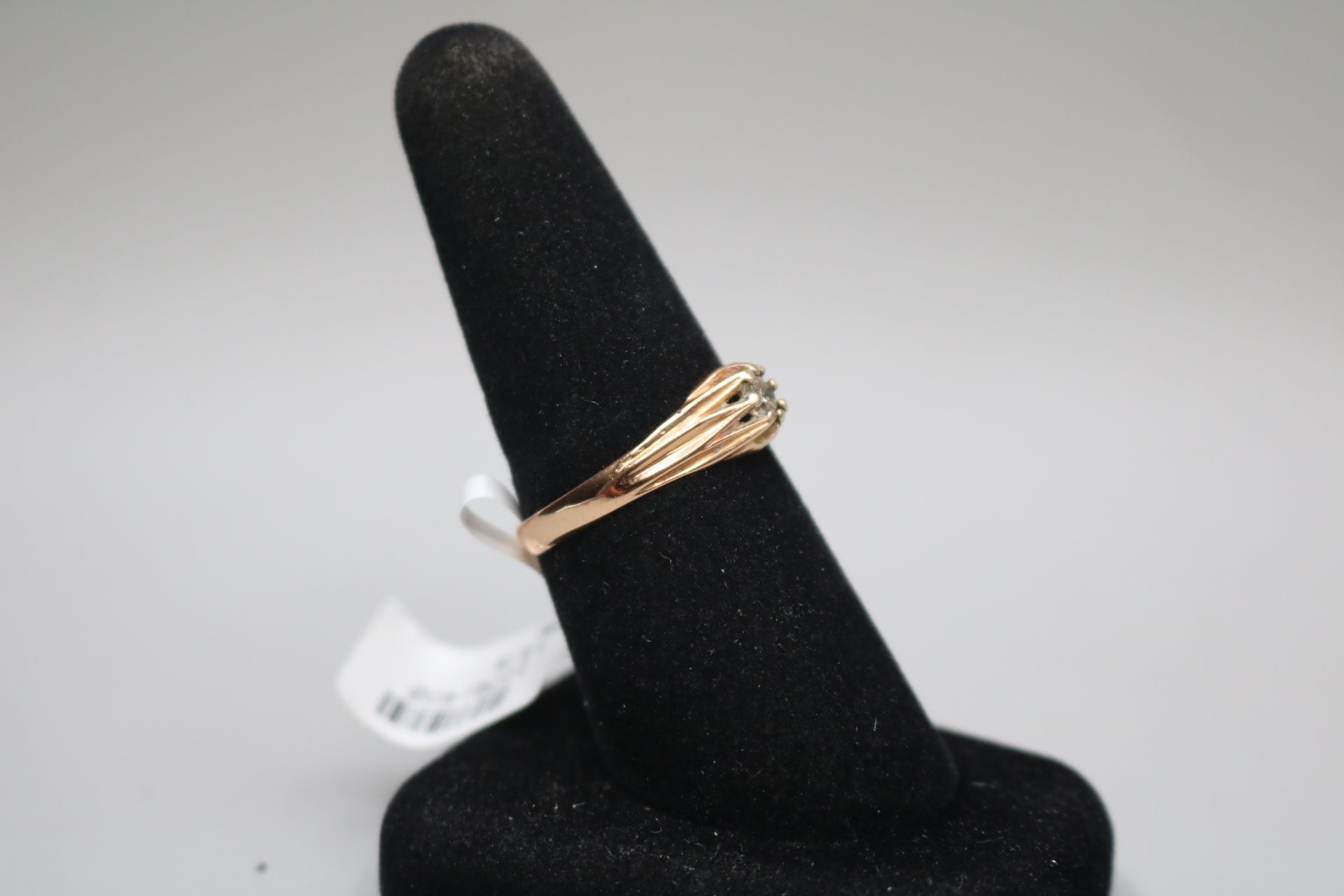 For sale is an 18K Rose Gold Fancy Solitaire Diamond Ring in excellent condition. The ring has been professionally cleaned and polished. It features a center diamond with a color grade of J, a clarity rating of SI1, and a total weight of 0.10 carats. The ring weighs 2.6 grams and is a size 8 1/2. Please take a look at all the provided pictures for a comprehensive understanding of the item you are purchasing. A layaway plan is available with a 30% deposit. For additional information, please feel free to contact us. You can pick up the item during regular business hours, or we can ship it to you, complete with tracking information.