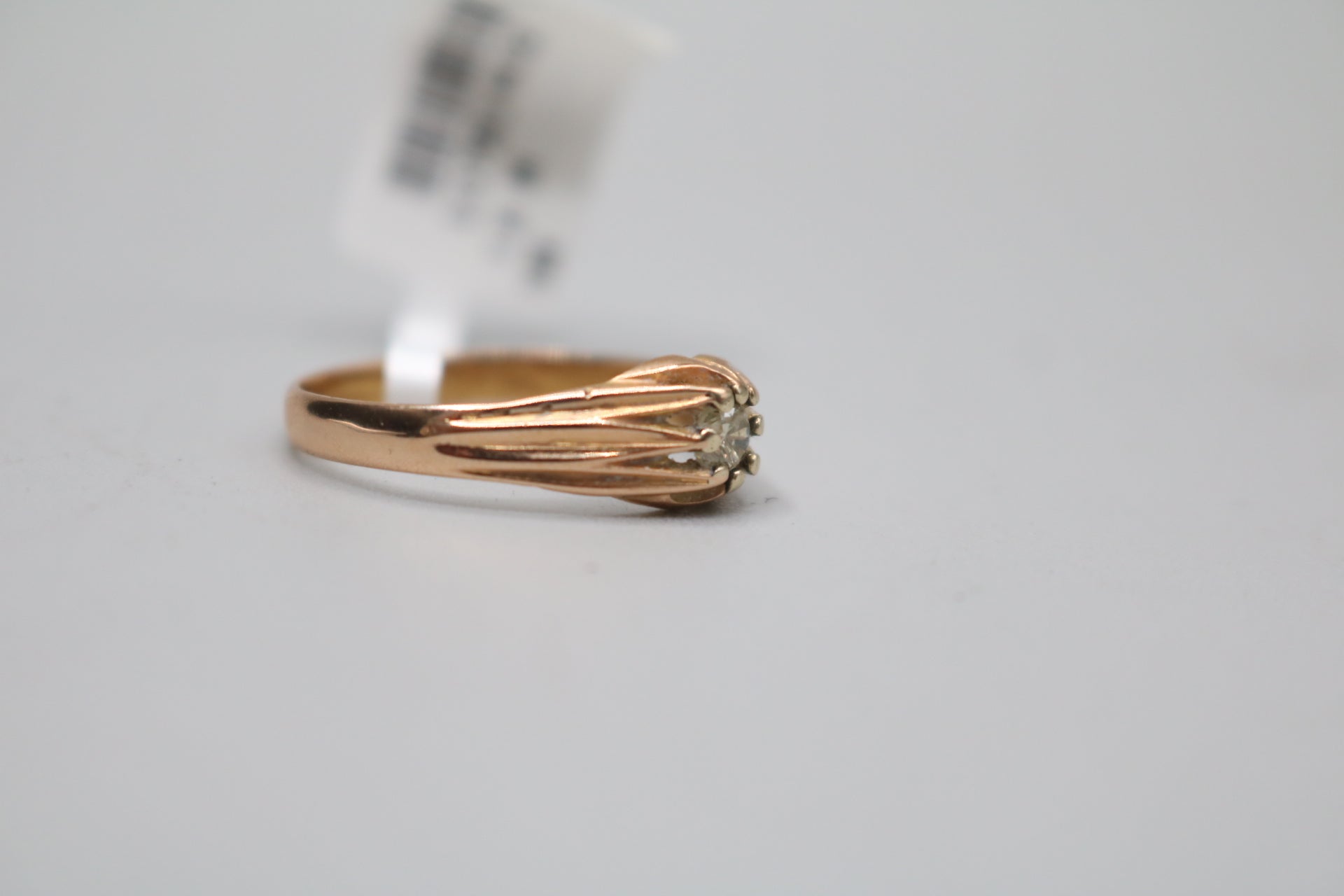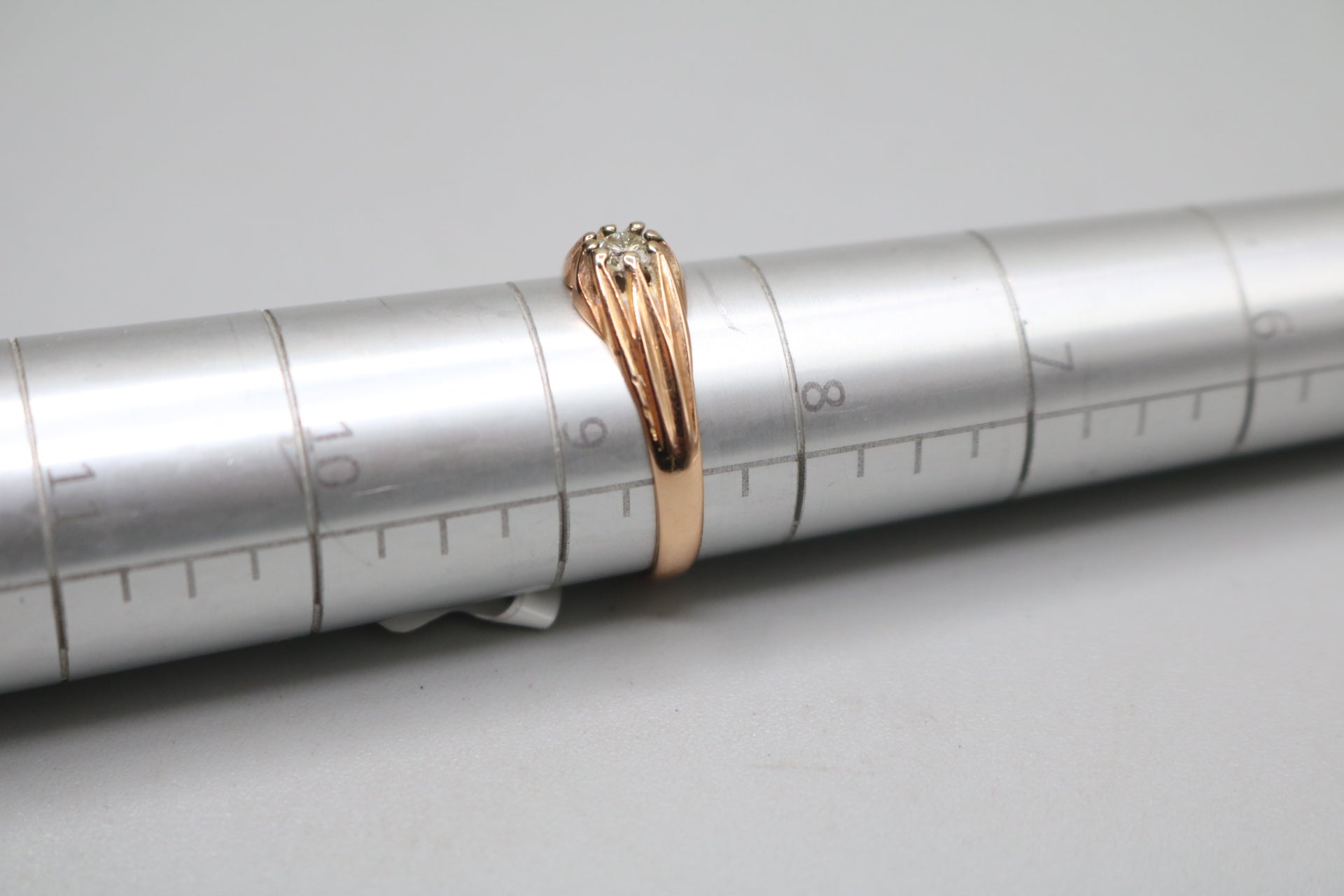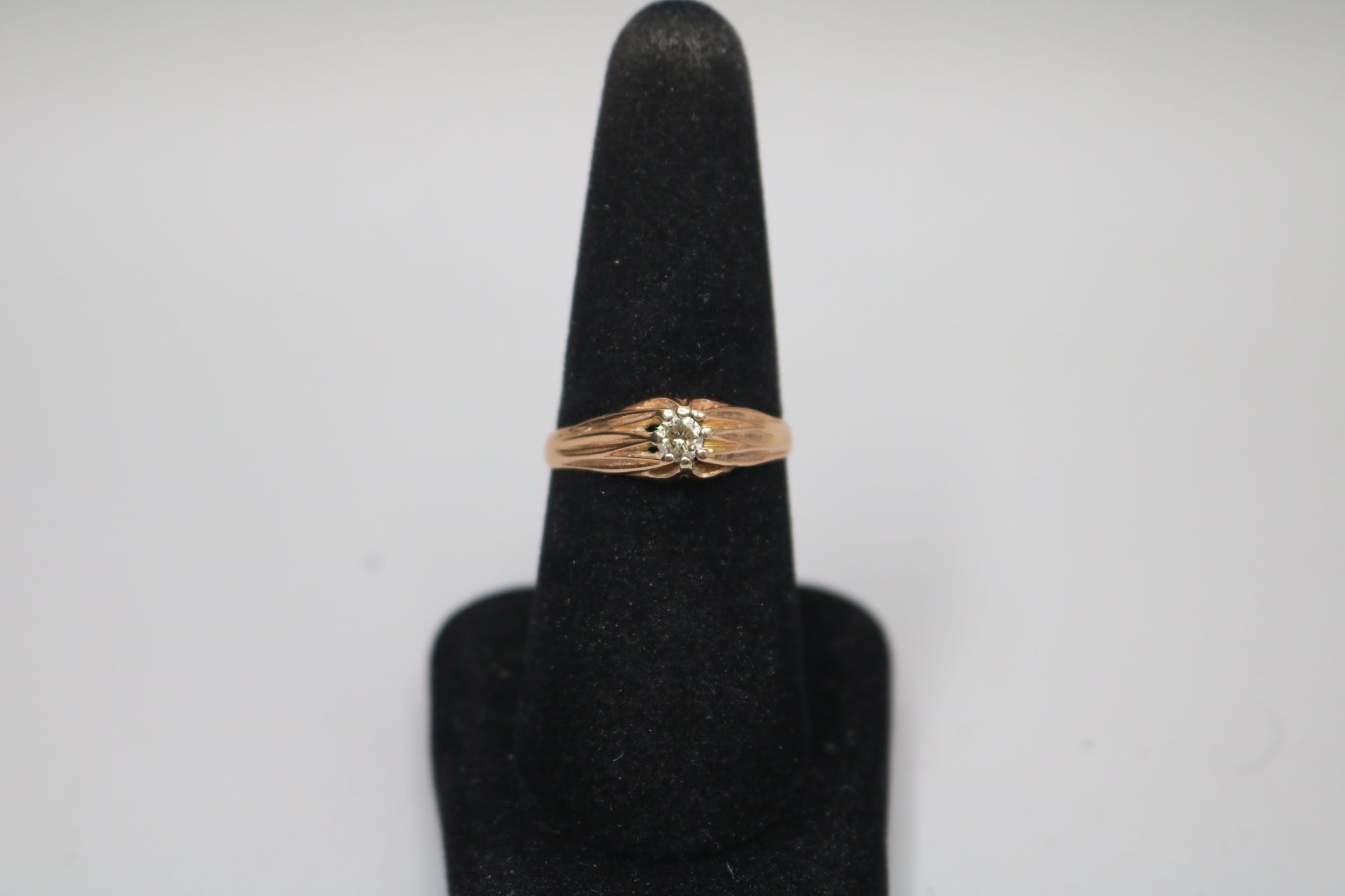 For sale is an 18K Rose Gold Fancy Solitaire Diamond Ring in excellent condition. The ring has been professionally cleaned and polished. It features a center diamond with a color grade of J, a clarity rating of SI1, and a total weight of 0.10 carats. The ring weighs 2.6 grams and is a size 8 1/2. Please take a look at all the provided pictures for a comprehensive understanding of the item you are purchasing. A layaway plan is available with a 30% deposit. For additional information, please feel free to contact us. You can pick up the item during regular business hours, or we can ship it to you, complete with tracking information.