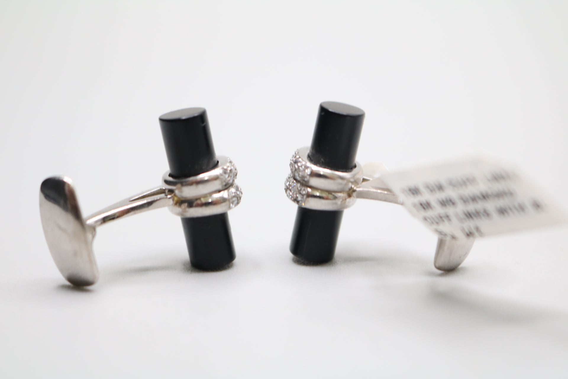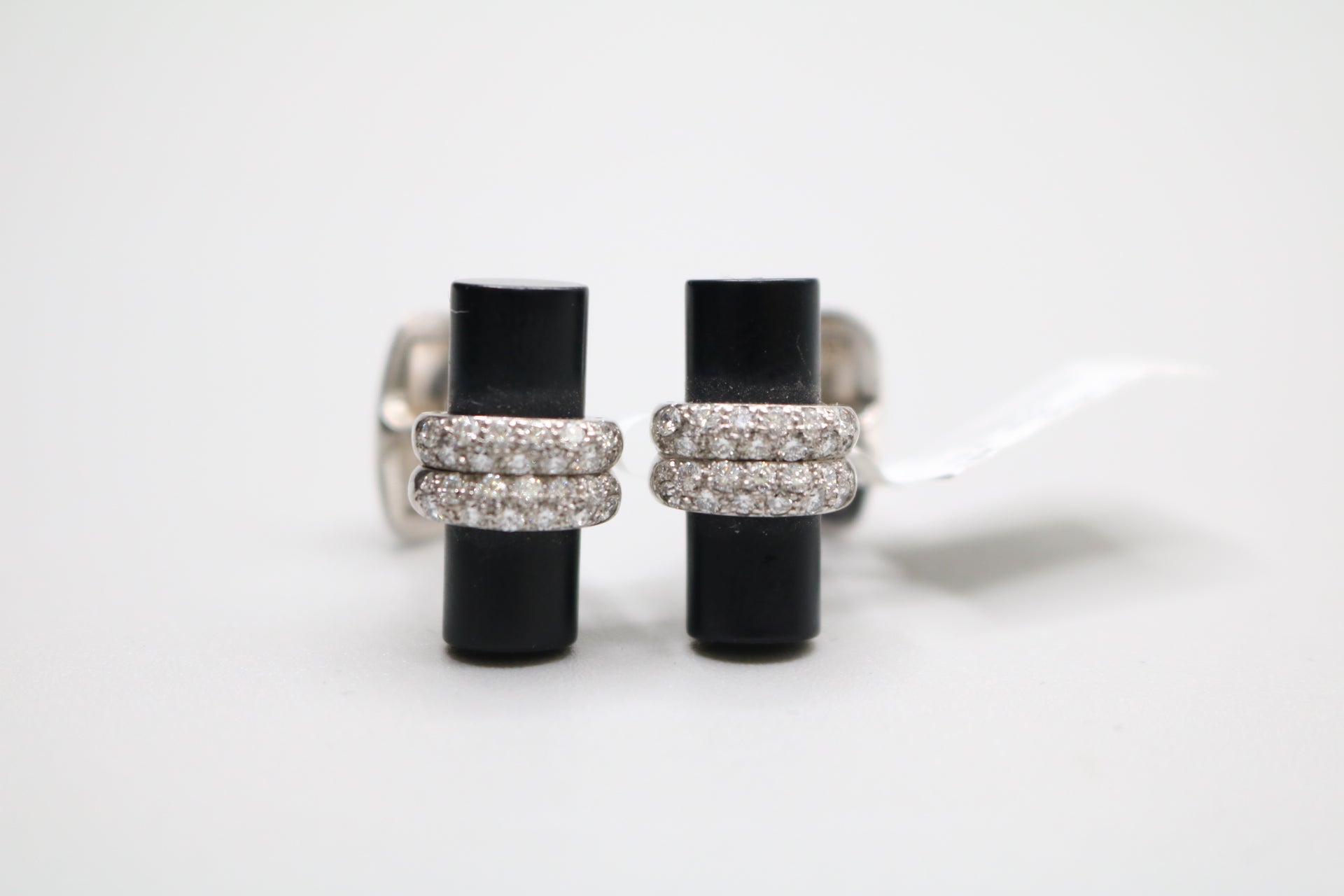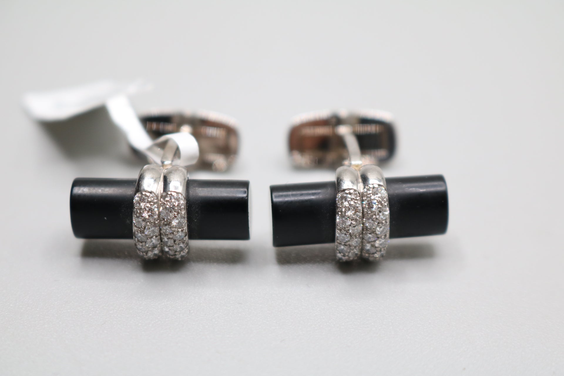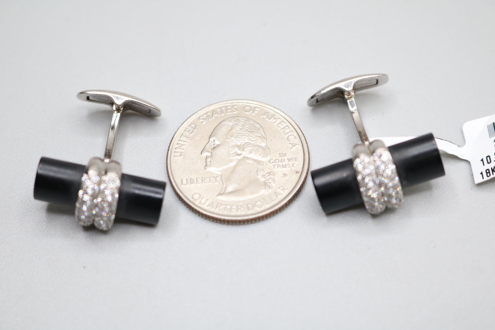 18K White Gold Diamond and Onyx Cufflinks (0.92 CTW) (Local Pick-up Only)