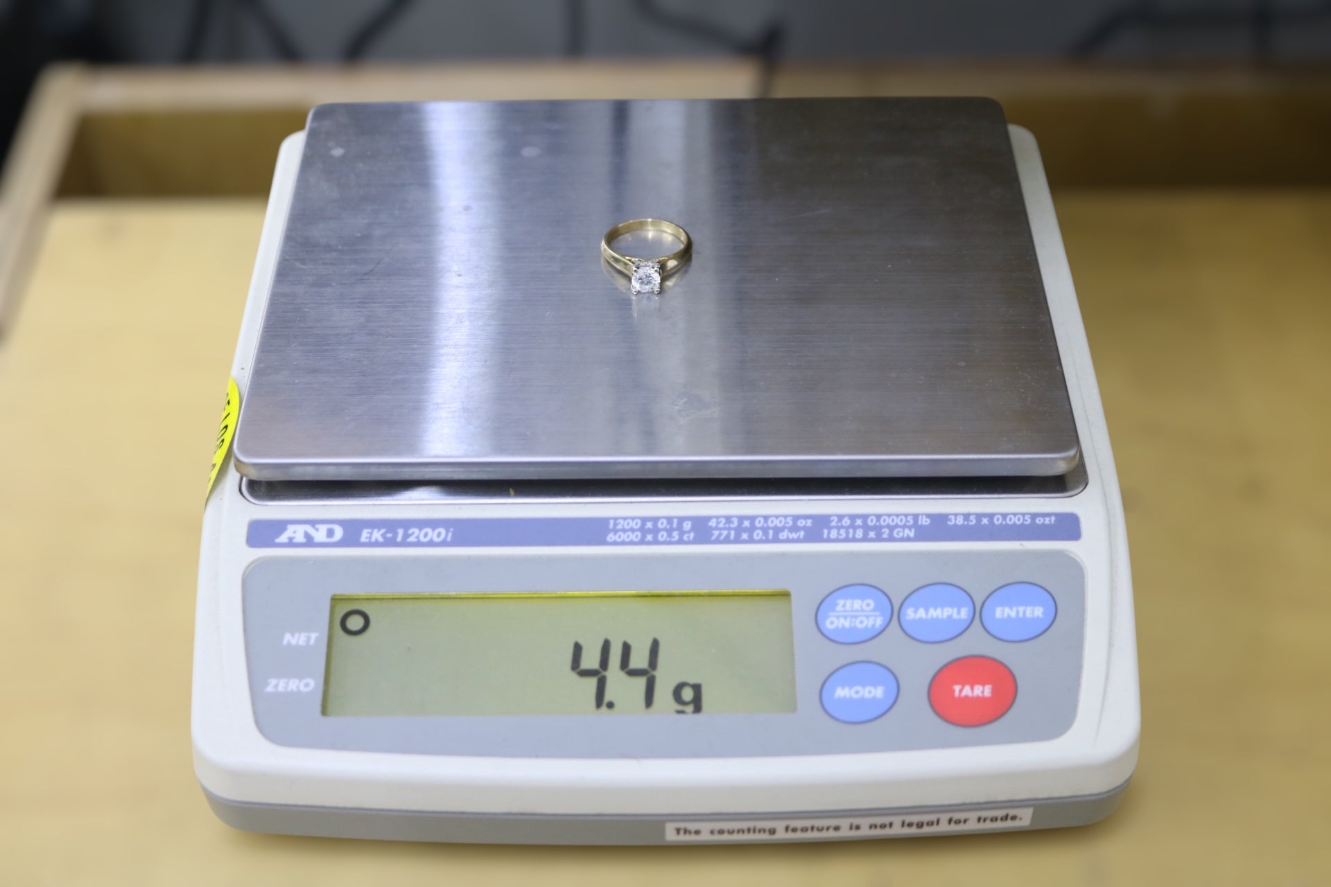 Introducing a stunning 18K Yellow Gold Diamond Solitaire Ring (0.82 CTW) (Size 6 & 3/4) for sale. This exquisite ring has undergone professional cleaning to reveal its true beauty. Adorned with a Solitaire design, it boasts a dazzling center-round brilliant diamond of 0.82 cts. The diamond is a color H and a quality rating of SI2. This size 6.75 ring weighs 4.4 grams and is presented with detailed pictures for your viewing pleasure. Take advantage of our layaway plan with a 30% deposit. For additional information, please contact us. You can purchase the item anytime during regular business hours.