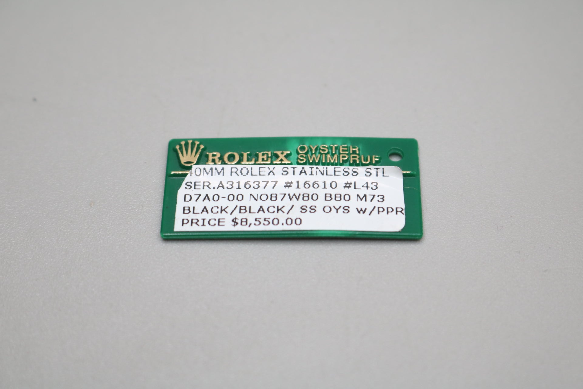 Today, on offer, we have an Authentic Secondhand 1999 Rolex Oyster Perpetual Date Submariner 16610 40mm Men's Watch (Local Pick-Up Only). The watch has been inspected and certified as authentic. The watch is in great cosmetic and working condition. The watch is made of stainless steel and has a black dial. The watch comes with 2 additional links and an authenticity report. Please view the pictures for the cosmetic details of the item you are purchasing. Thank you. A layaway plan is available with a 30% deposit. Please contact us for further shipping. You can purchase the item anytime during regular business hours; store pick-up is the only method of purchase. No shipping is available.