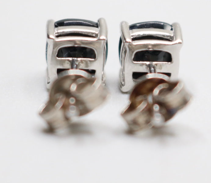 2.50 CTW Cushion Cut Black Spinel Solitaire Stud Sterling Silver Earrings 1.6 Grams