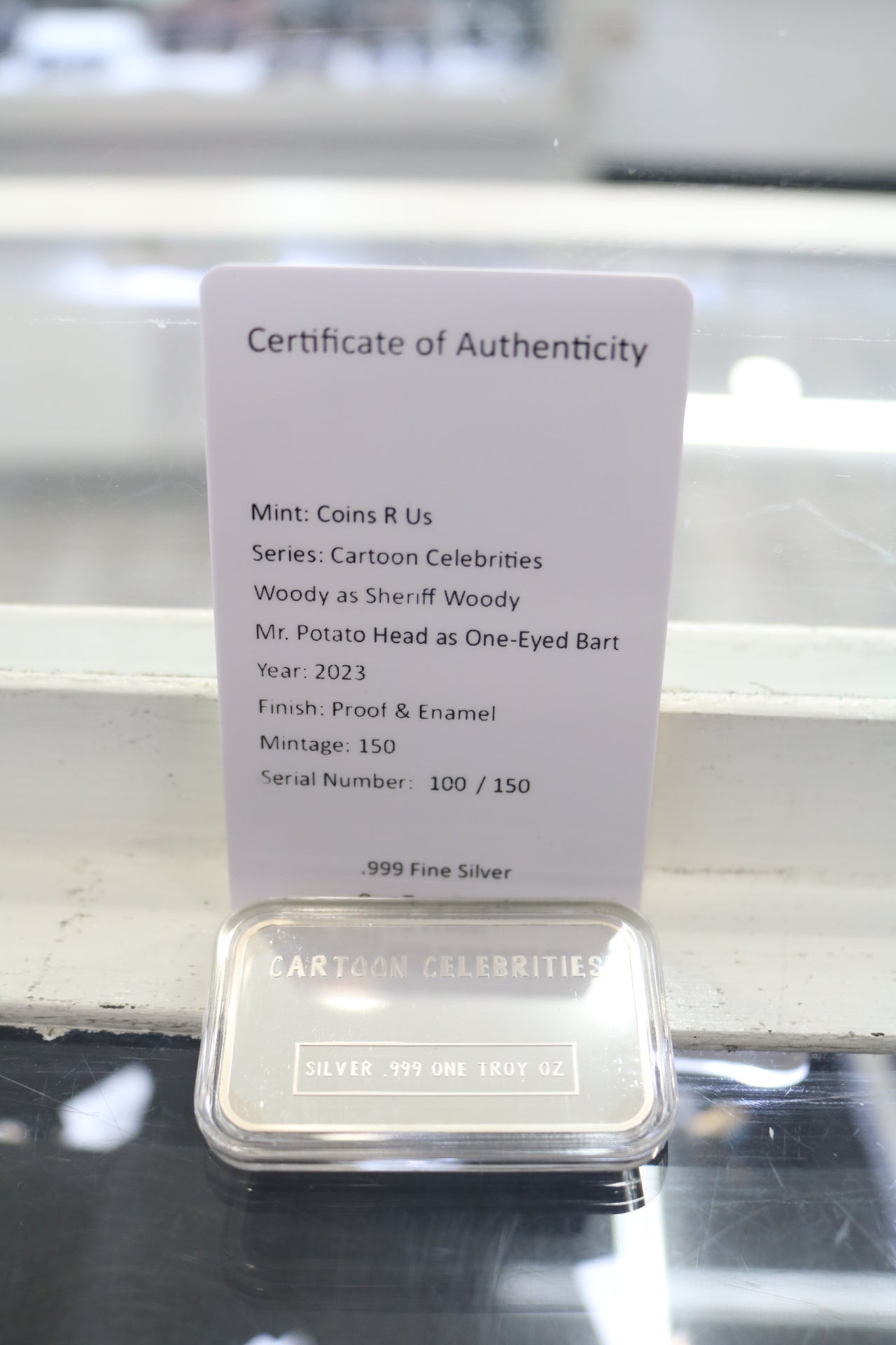 We are excited to offer this exquisite 1-ounce silver bar featuring beloved Cartoon Celebrities from Toy Story. Crafted with .999 fine silver and beautifully enamelled, this collectible is in excellent cosmetic condition and truly a must-have for any enthusiast. The bar comes complete with a Certificate of Authenticity, as illustrated in the attached pictures, ensuring its value and uniqueness. To make your purchase even more convenient, we offer a flexible layaway plan with just a 30% deposit. For any inquiries or further details, please don’t hesitate to reach out—we're here to help! You can choose to pick up your treasured item during our regular business hours, or opt for shipping, which will include tracking information and insurance for peace of mind. Don’t miss this opportunity to add a charming piece to your collection!