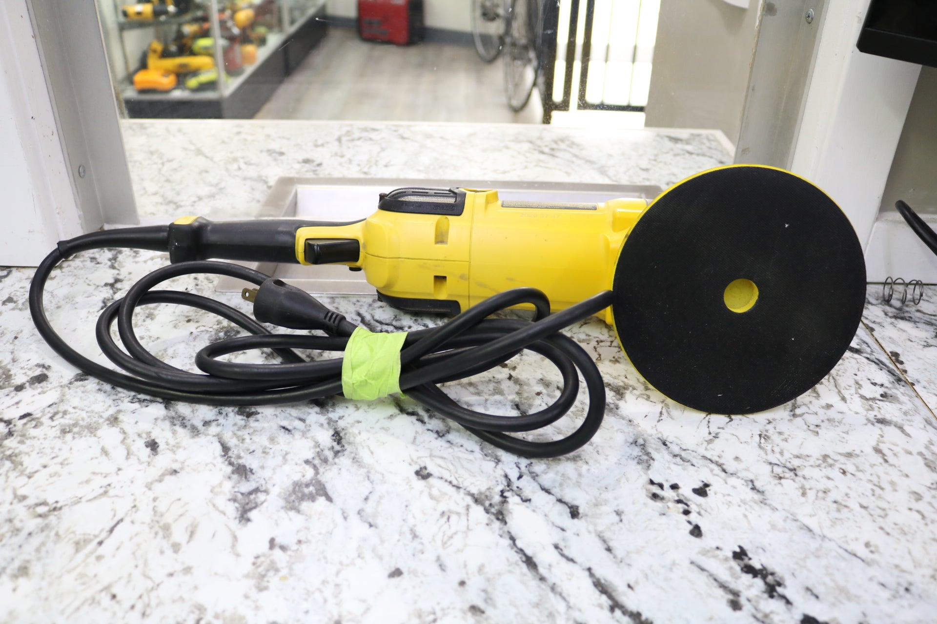 Up for sale, we have a secondhand DeWalt DWP849 Corded Polisher. The item is in good working and cosmetic condition and does not come with any additional accessories, as it is a corded tool. You can view pictures of the item's cosmetic condition before making your purchase. We offer a layaway plan with a 30% deposit if you're interested. The item can be picked up during regular business hours. This item is not eligible for shipping. Local purchase is the only option available for this item.