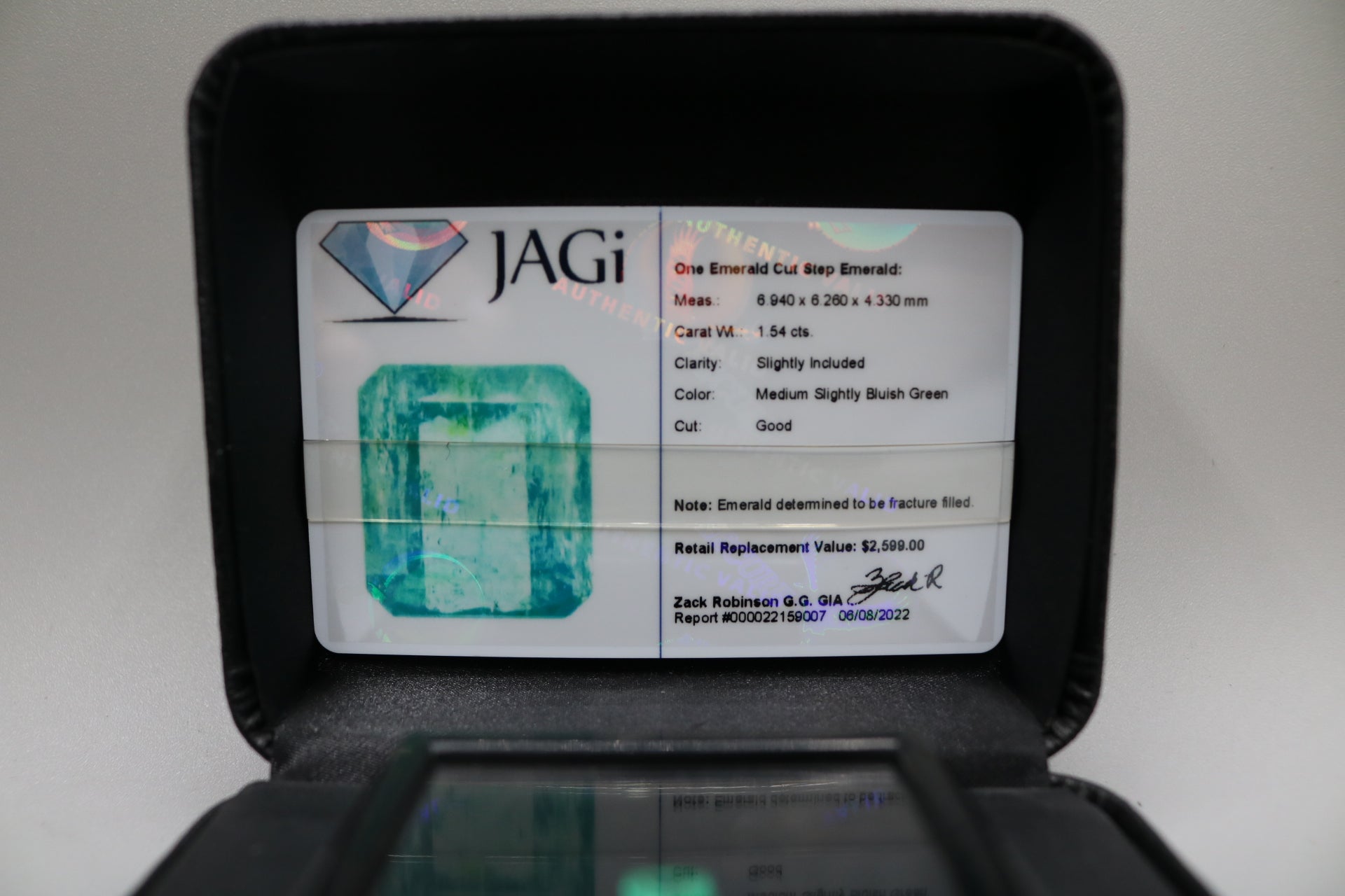 Up for sale, we have a pre-owned Emerald Cut Step Emerald (1.54 cts). The gemstone has a color of medium slightly bluish green, a cut rating of good, and a clarity of slightly included. The emerald has been determined to be fracture-filled. Please view the pictures for the cosmetic details of the item you are purchasing. Thank you. A layaway plan is available with a 30% deposit. You can purchase the item anytime during regular business hours, shipping includes tracking information.