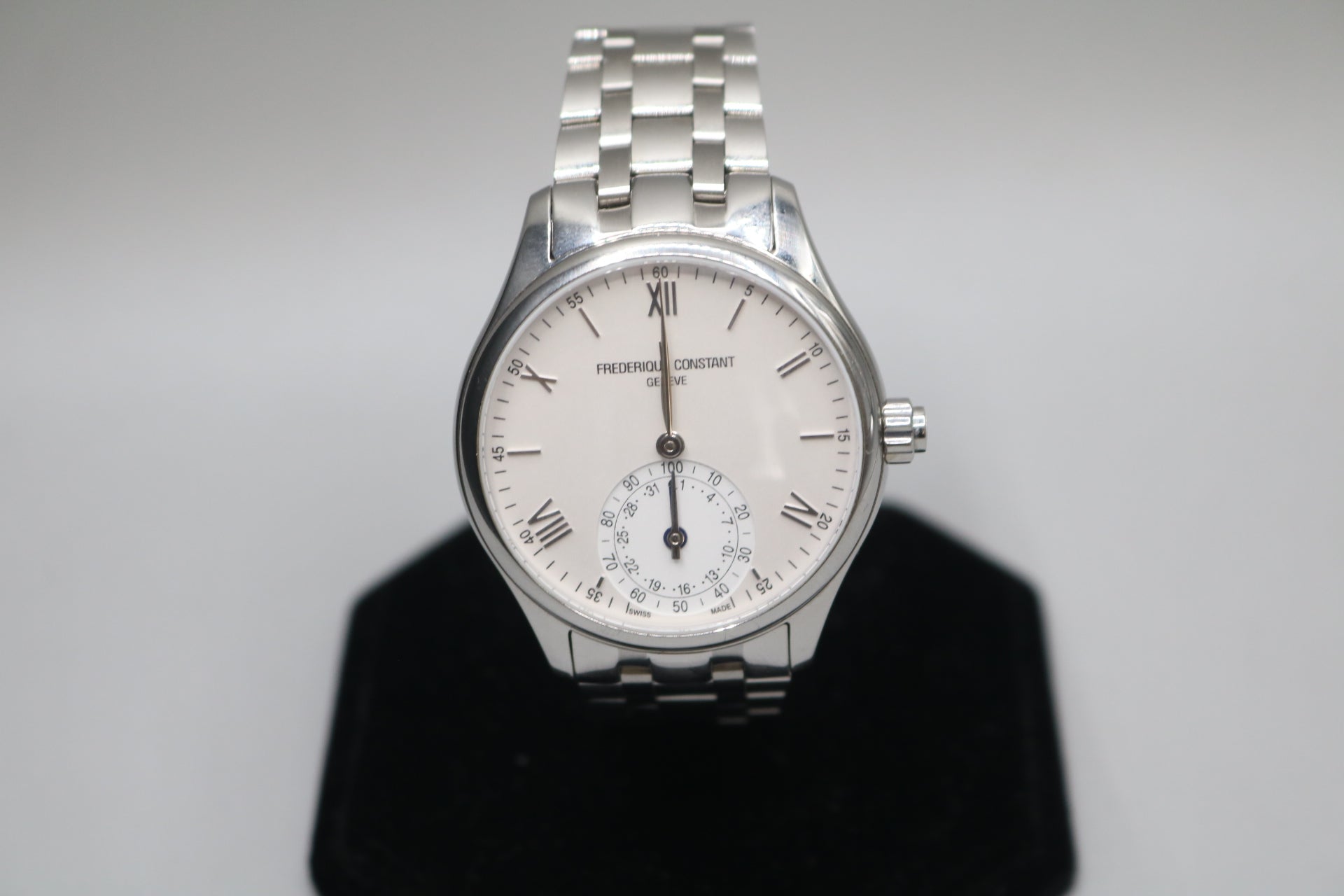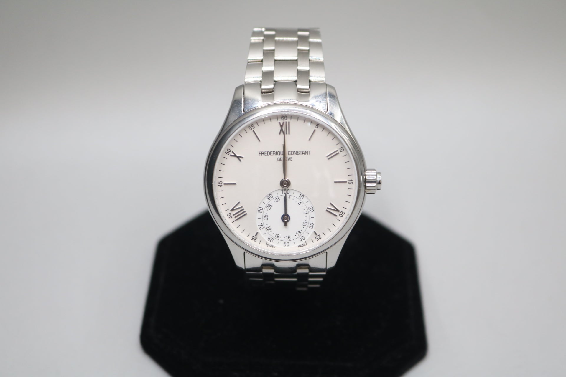 Today, on offer, we have a secondhand Frédérique Constant Horological Smartwatch FC-285X5B4/6 Men's Watch. The watch is in great cosmetic and working condition. The watch is made of stainless steel and has a white dial. The watch comes with no additional accessories. Please view the pictures for the cosmetic details of the item you are purchasing. Thank you. A layaway plan is available with a 30% deposit. Please contact us for further details. You can purchase the item anytime during regular business hours.