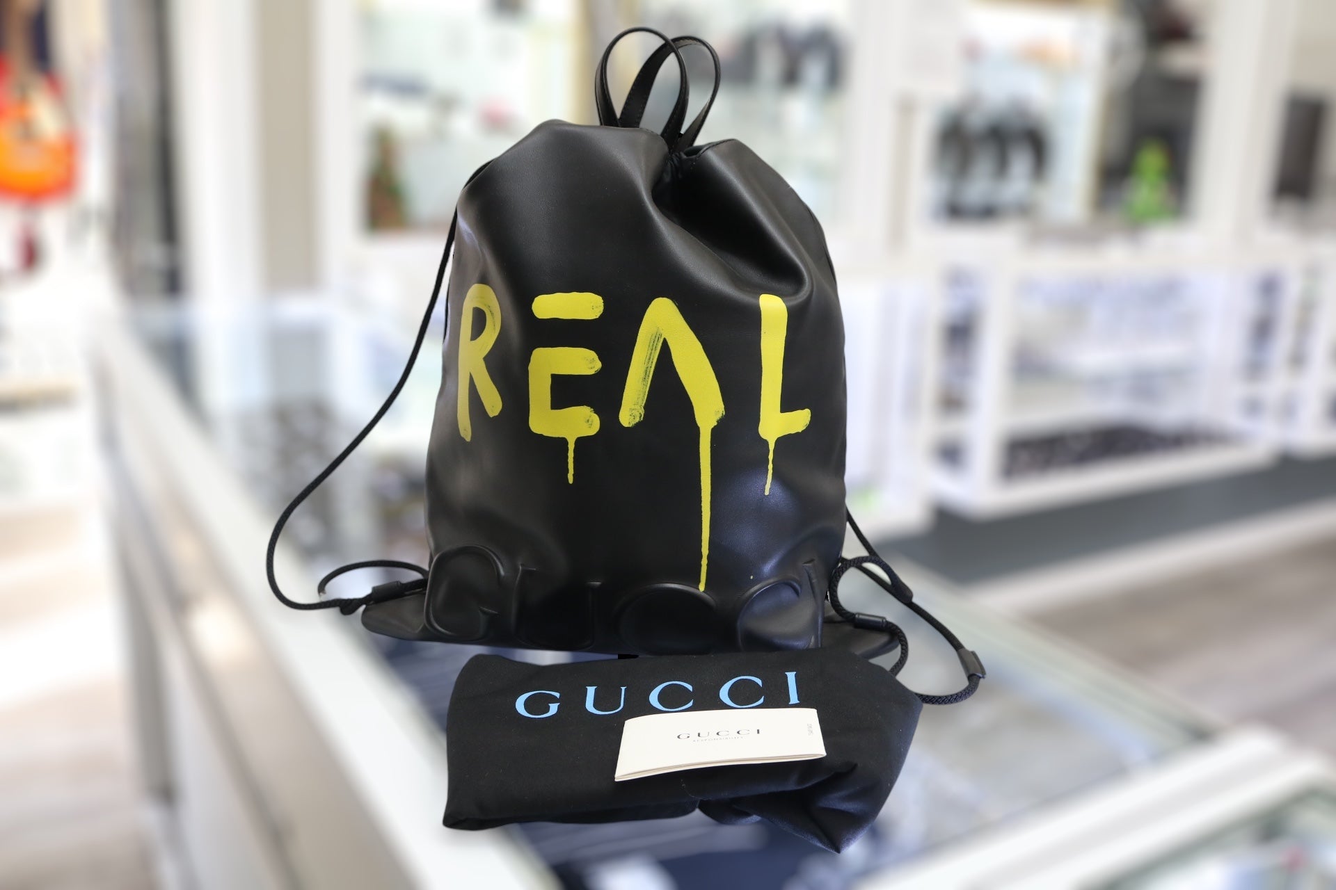 Up for sale, we have a pre-owned Authentic Gucci Ghost Drawstring Backpack Leather "Real" Design. The bag is in great cosmetic condition with extremely minimal wear. The item also comes with a certificate of authenticity from Entrupy and a dust bag. The bag's measurements are 17" (H), 15" (L), and 2" (W). Please view the pictures for the cosmetic details of the item you are purchasing. A layaway plan is available with a 30% deposit. Thank You. You can purchase the item anytime during regular business hours. Unfortunately, we do not offer shipping for this bag; Local pick-up only.