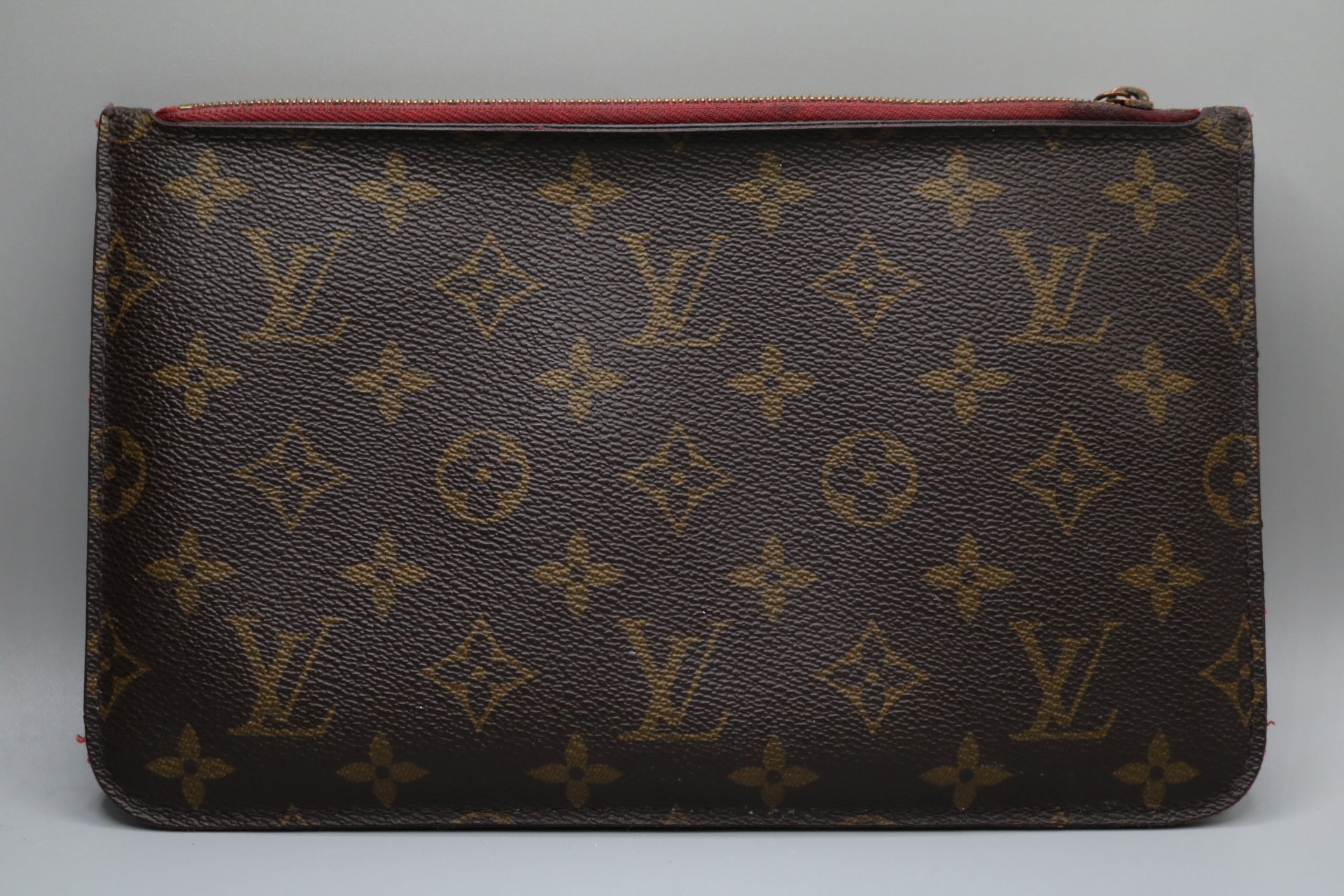 Up for sale, we have a pre-owned Authentic Louis Vuitton Neverfull Monogram Wallet. The wallet has visible cosmetic wear from previous use on the exterior, the interior, the straps, and the corners. This wear can be viewed in the photos attached to the listing. The length of the bag is 9 and a 1/2", the height is 6 inches, and the width is 0.5 inches. The bag comes with an authentication certificate from Entrupy. Please view the pictures for any cosmetic details of the item you are purchasing. A layaway plan is available with a 30% deposit. Thank you. You can pick up the item anytime during regular business hours, shipping includes tracking information.