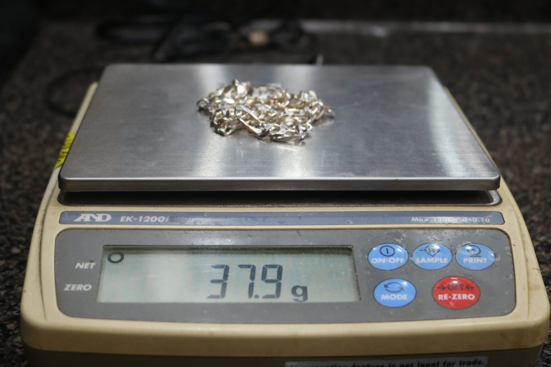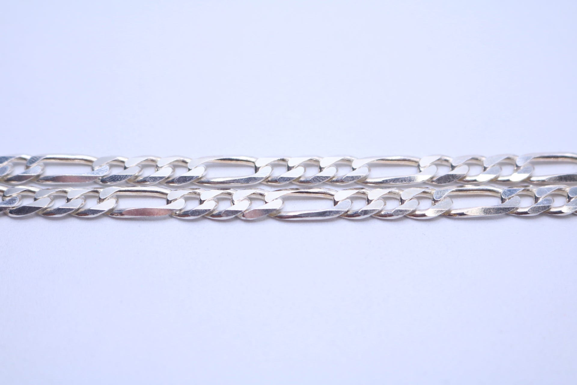 Pre-owned Silver Figaro Chain (24 Inches). The chain has been tested and works as intended. The chain has been professionally cleaned and polished. The chain has a weight of 37.9 grams. Please view pictures for cosmetic details of the item you are purchasing. Thank you. Layaway plan available with a 20% deposit. You can pick up the item anytime during regular business hours, shipping includes tracking information.