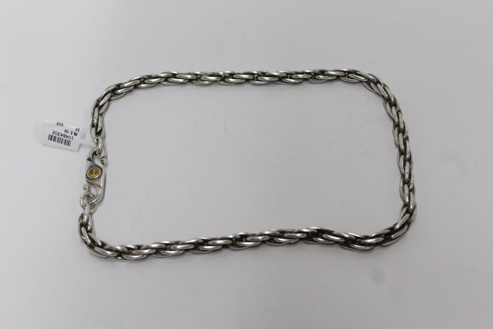 The item on sale is a Sterling Silver Rope Chain With Clear Yellow Stone . The Silver Chain weighs 101.2 grams. The item has been professionally cleaned and polished. Please view pictures for cosmetic details of the item you are purchasing. You may pick up in store during regular business hours. Shipping includes tracking information. Layaway is also available with a 30% down payment, thank you.