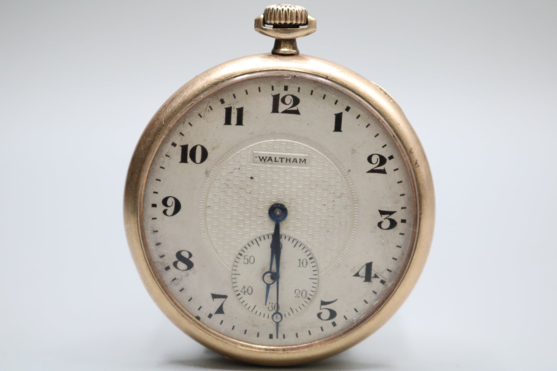 Check out this pre-owned Waltham Gold Plated Pocket Watch in good cosmetic condition. It may need some maintenance but only has minor scuff marks and scratches. The watch does run, although it runs a bit fast and pauses at times and it's missing the second's hand. This Waltham brand pocket watch is gold-plated, and you can view all the pictures provided for a clear understanding. A layaway plan is available with a 30% deposit or we offer financing with Affirm for up to 6 months, depending on the item you are purchasing. You can pick up the item anytime during regular business hours or get it shipped to you and shipping will include tracking information.